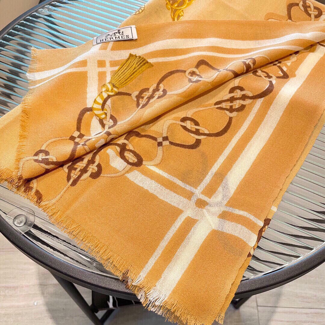PRINTED SCARF 200 CM IN GOLDEN YELLOW MIX COLORFUL CASHMERE 393003