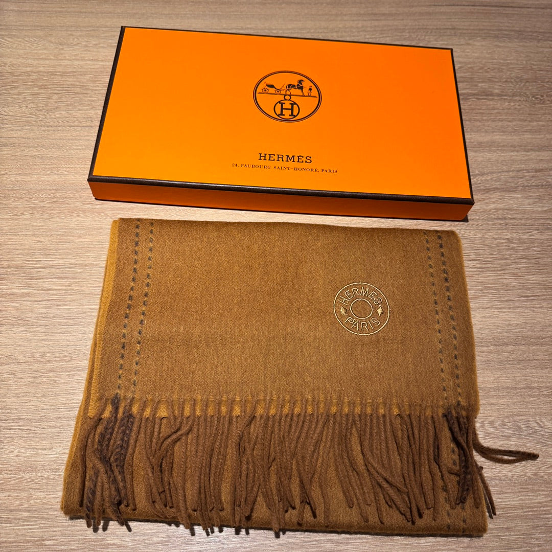BADGES SOIE MUFFLER 180 CM SCRAF IN TAN BROWN CASHMERE