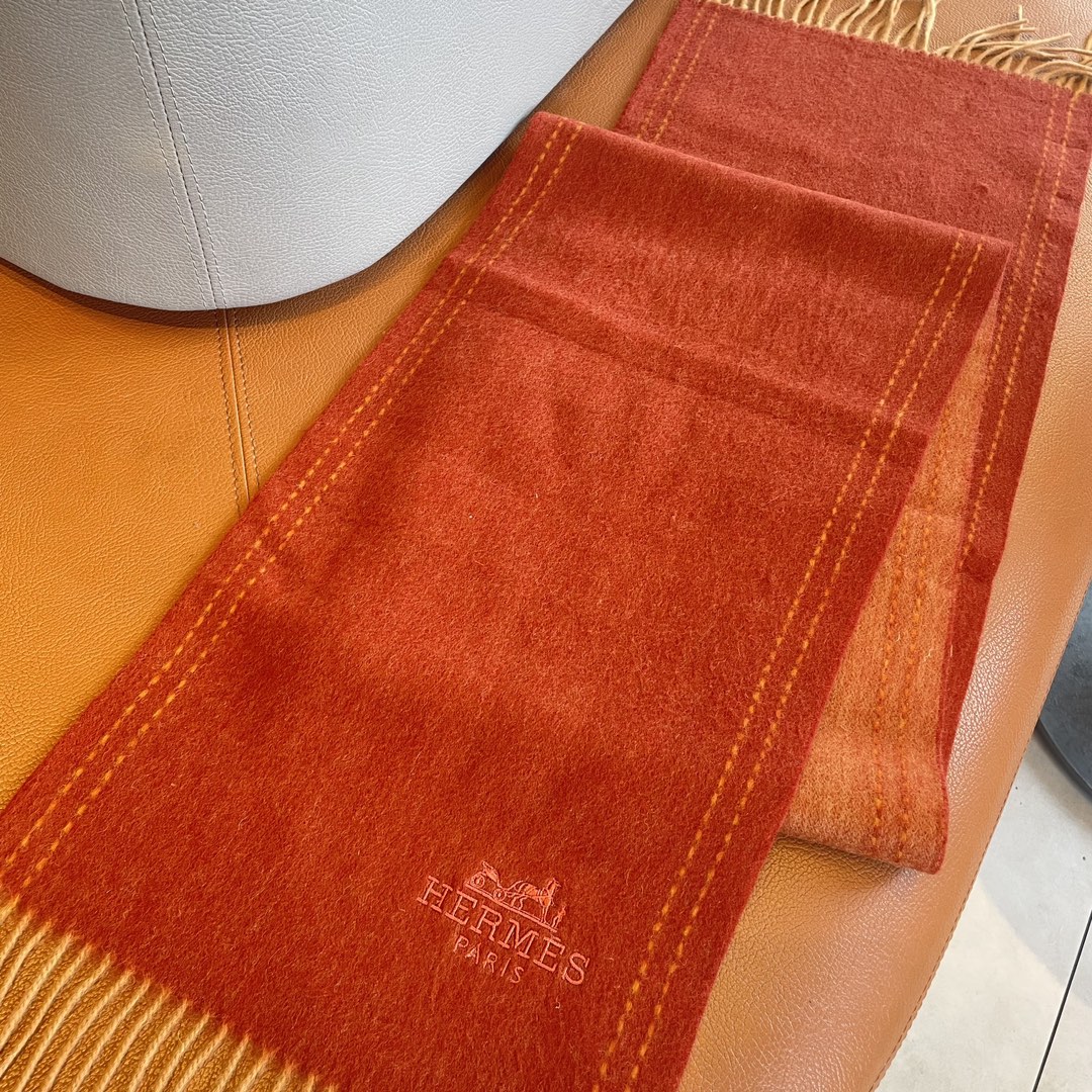 CASAQUE ENTRELACS EQUESTRES 190 CM SCARF IN ORANGE RED CASHMERE