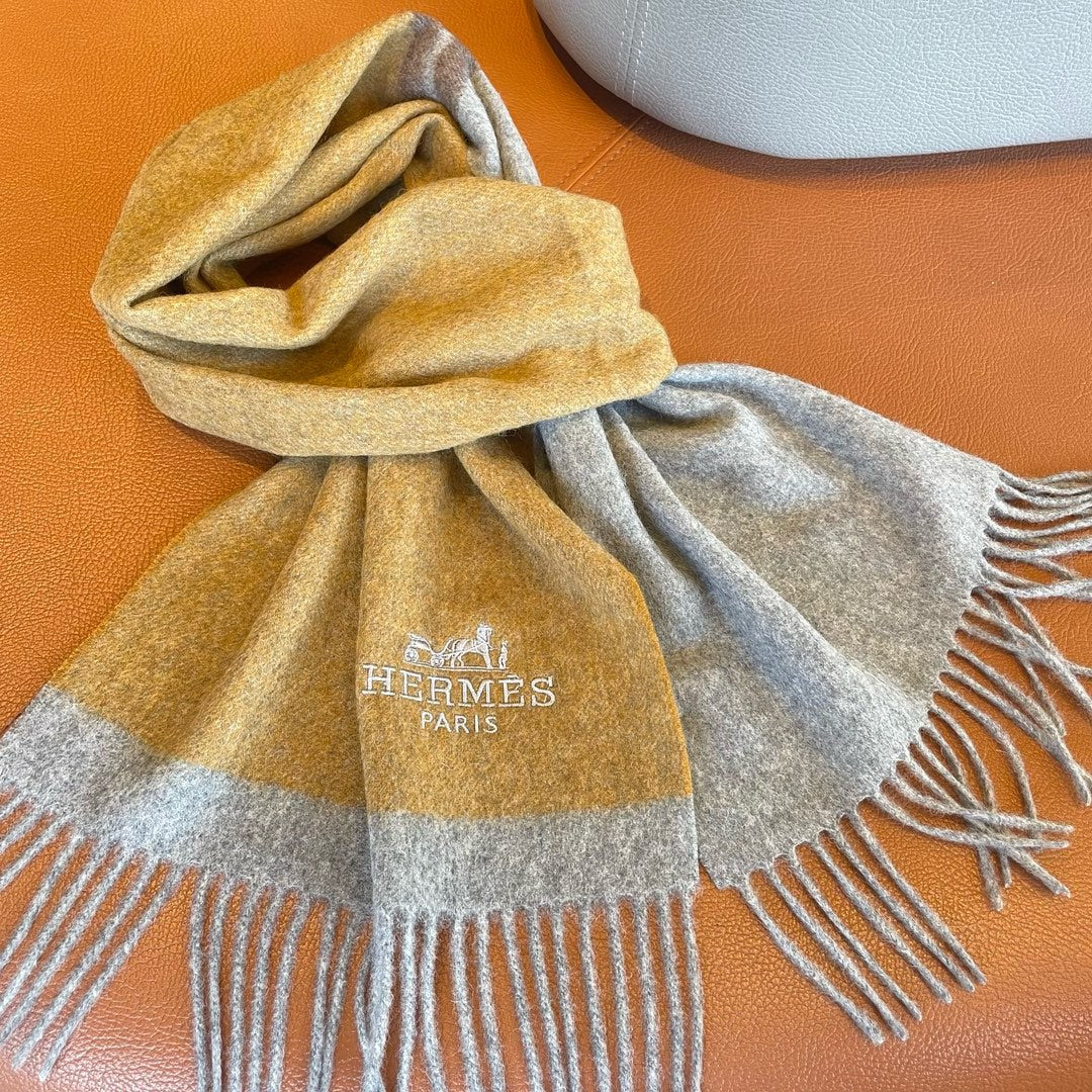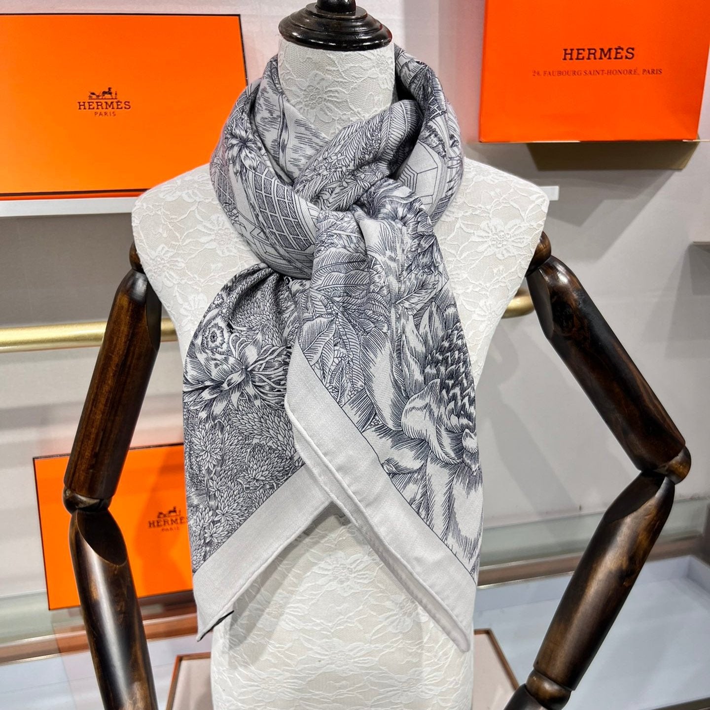 Hermes velvet scarf 185 CM Rice Gray Cotton Fabric