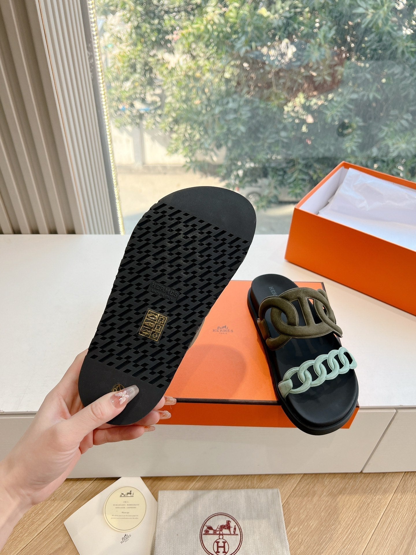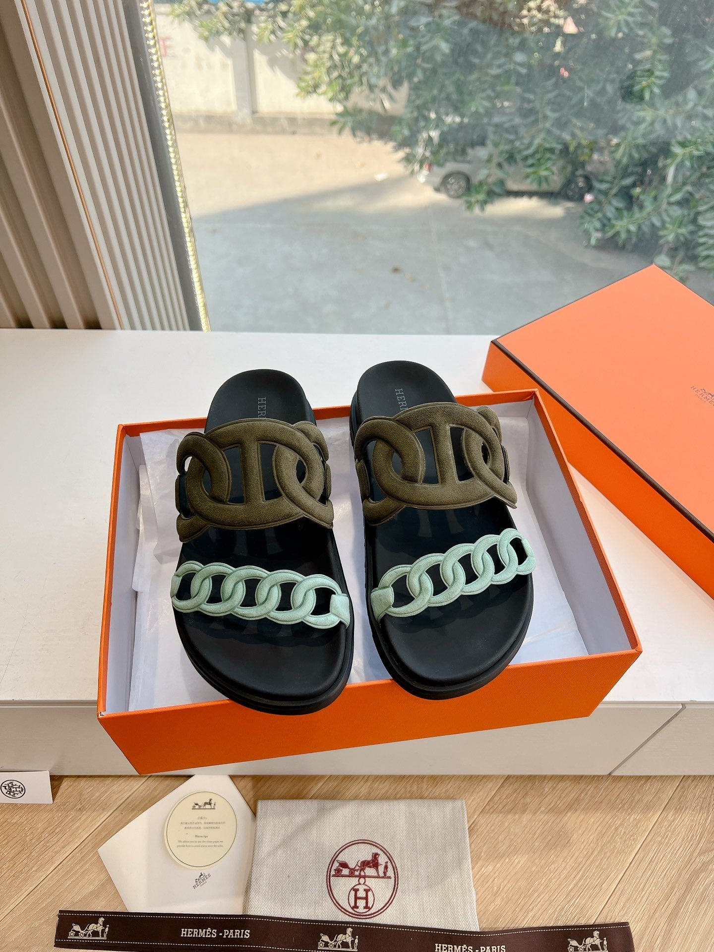 HM 25 Extra Sandal Khaki Tiffany Blue Calfskin