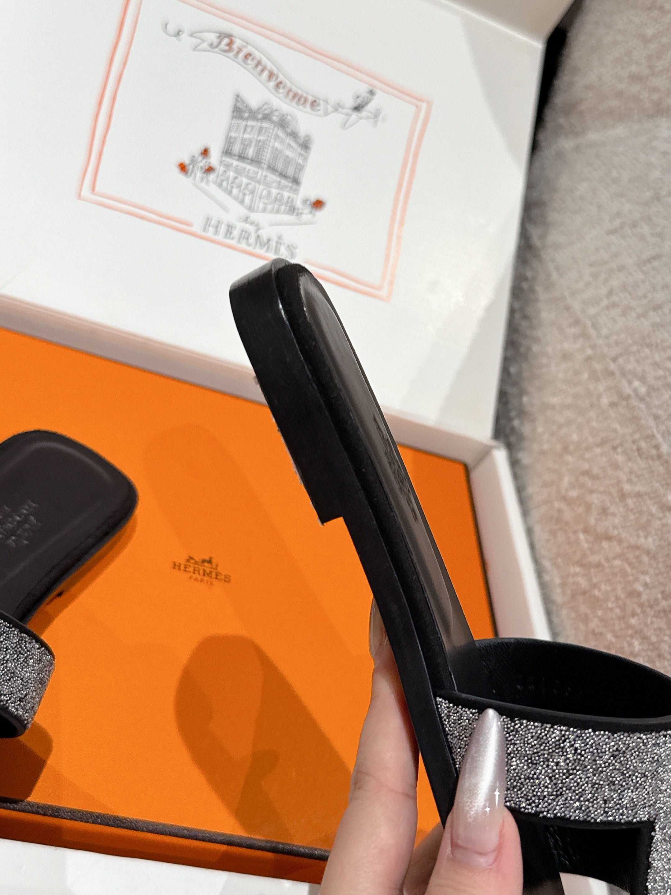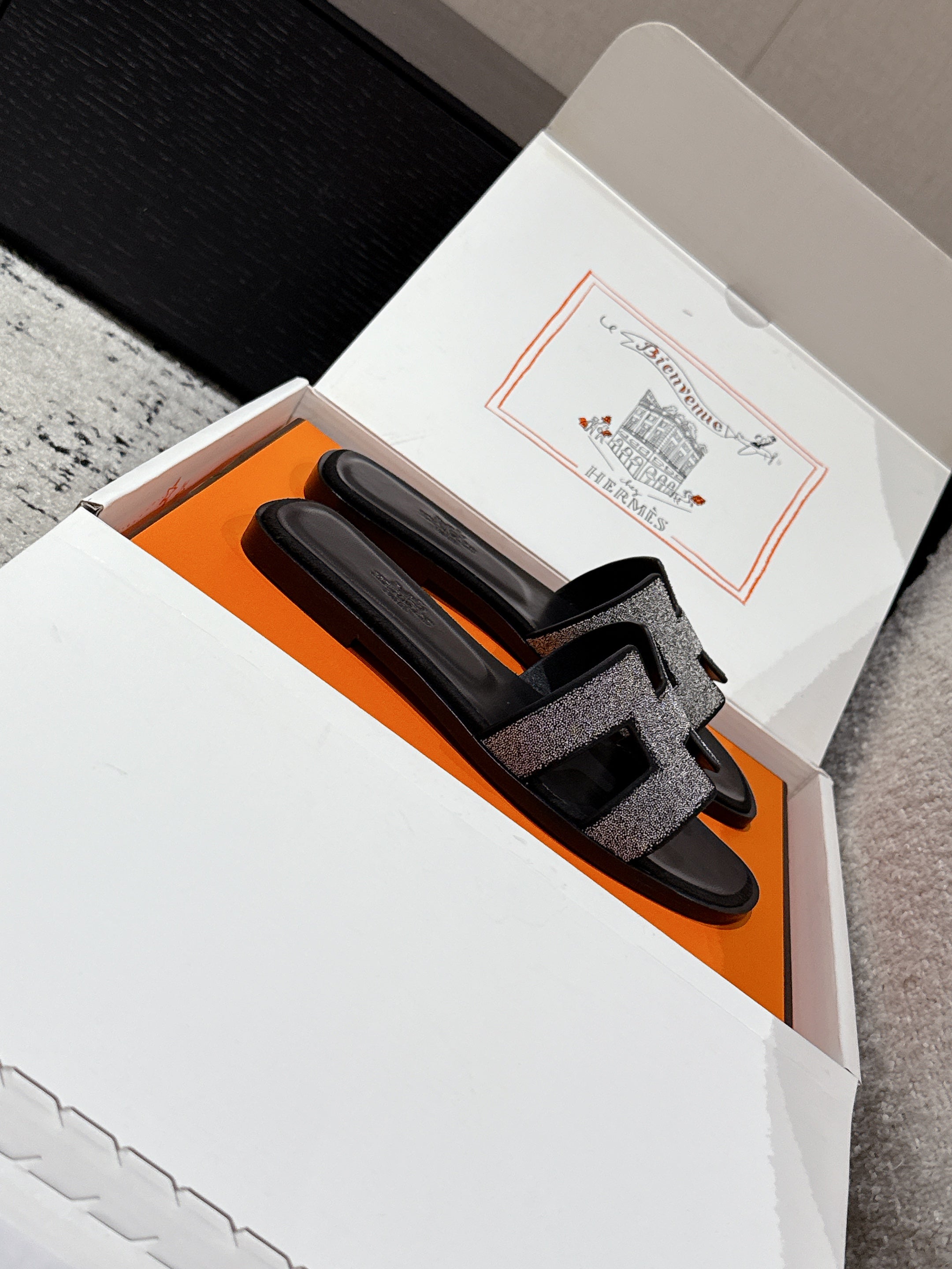 HM 25 Oran Glitter Sandal Black Calfskin
