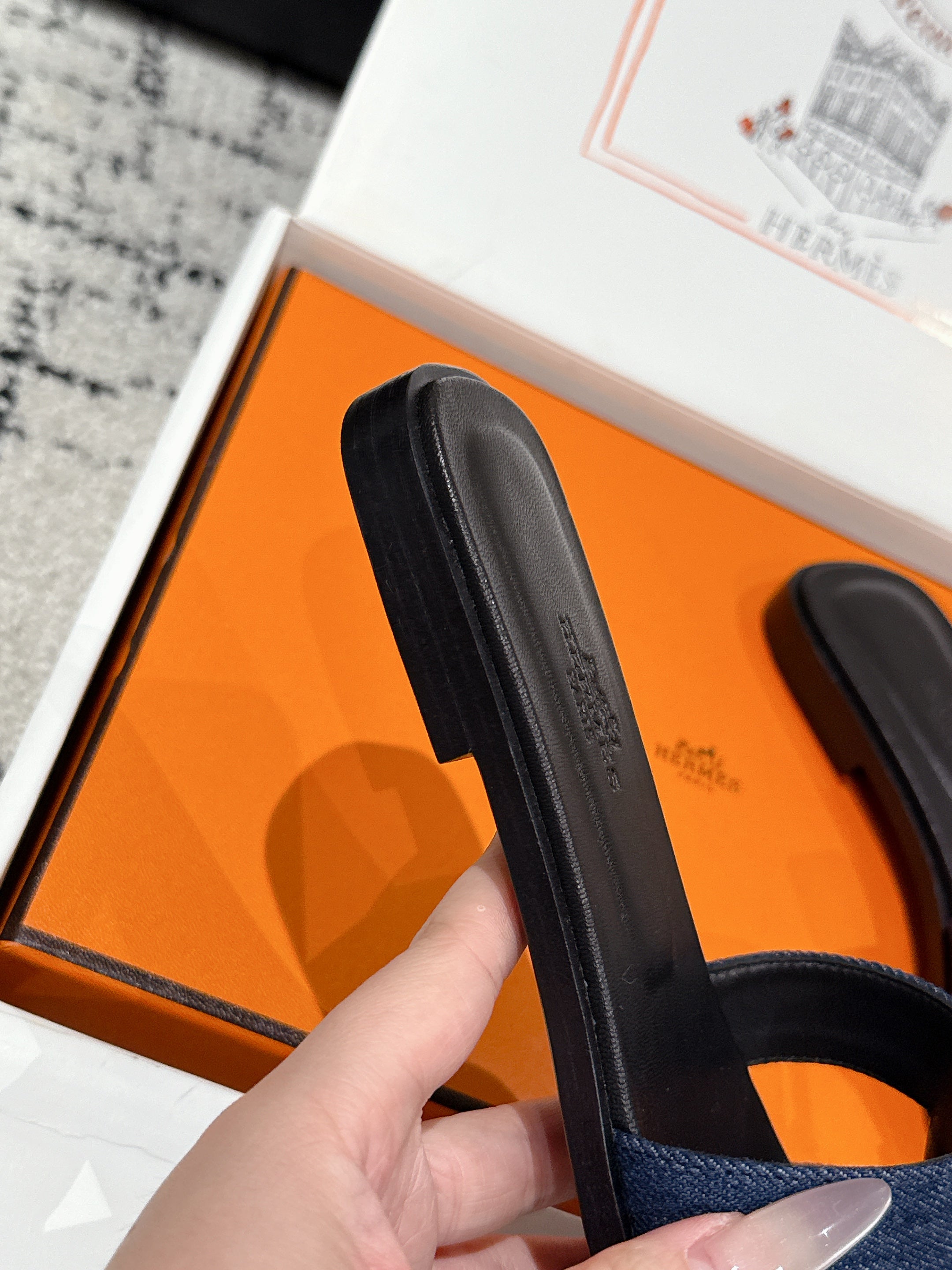 HM 25 Oran Sandal Black Calfskin Dark Blue Denim