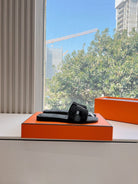HM 25 Oran Sandal Black Calfskin Rhinestone