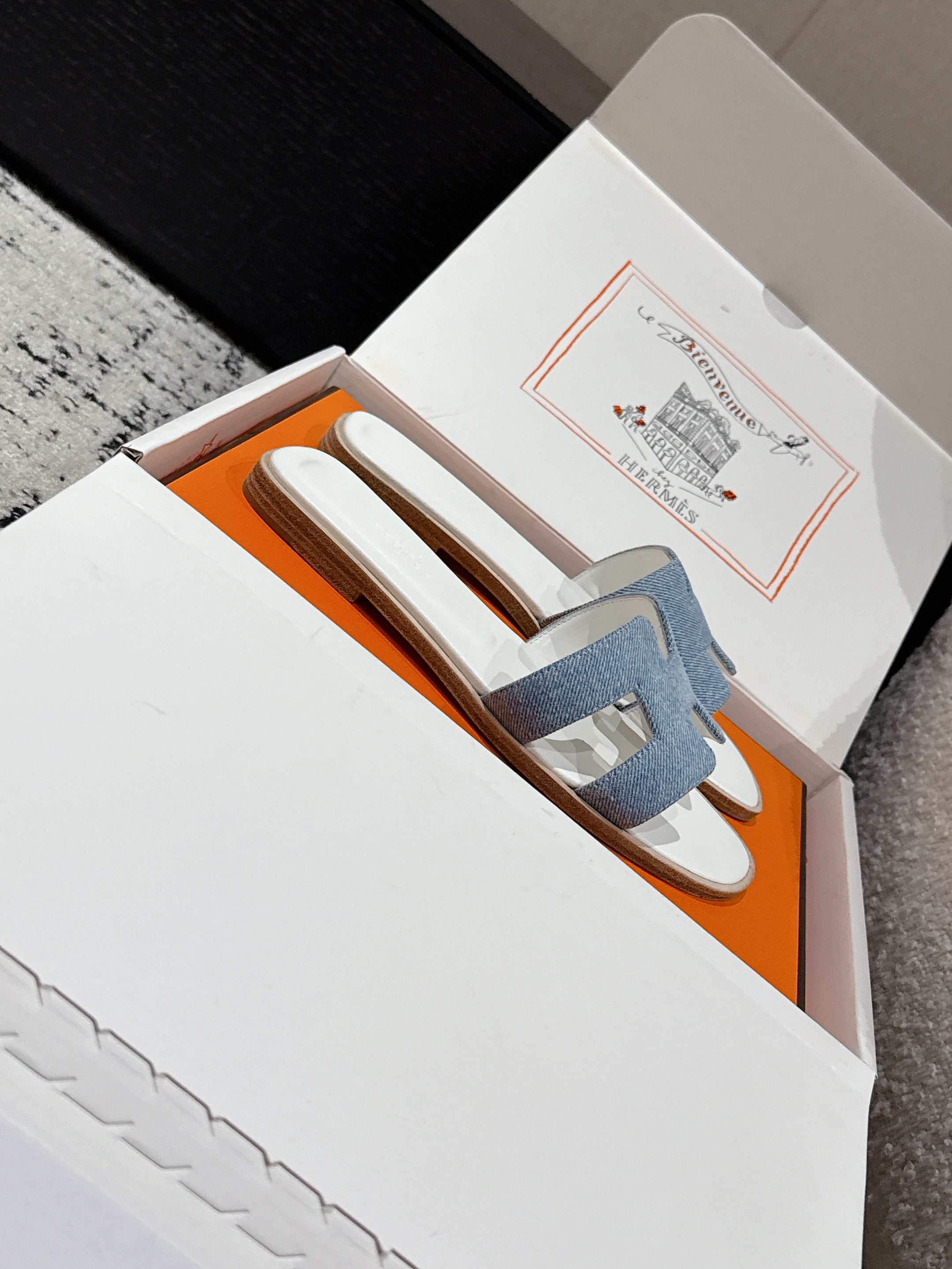HM 25 Oran Sandal White Calfskin Blue Denim