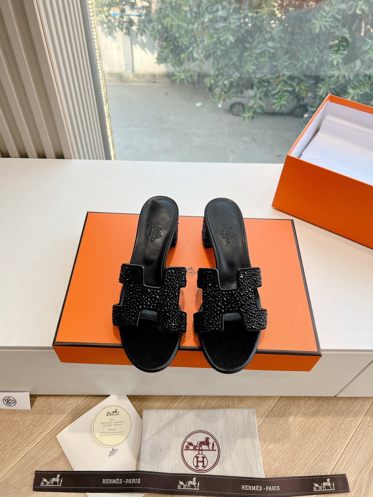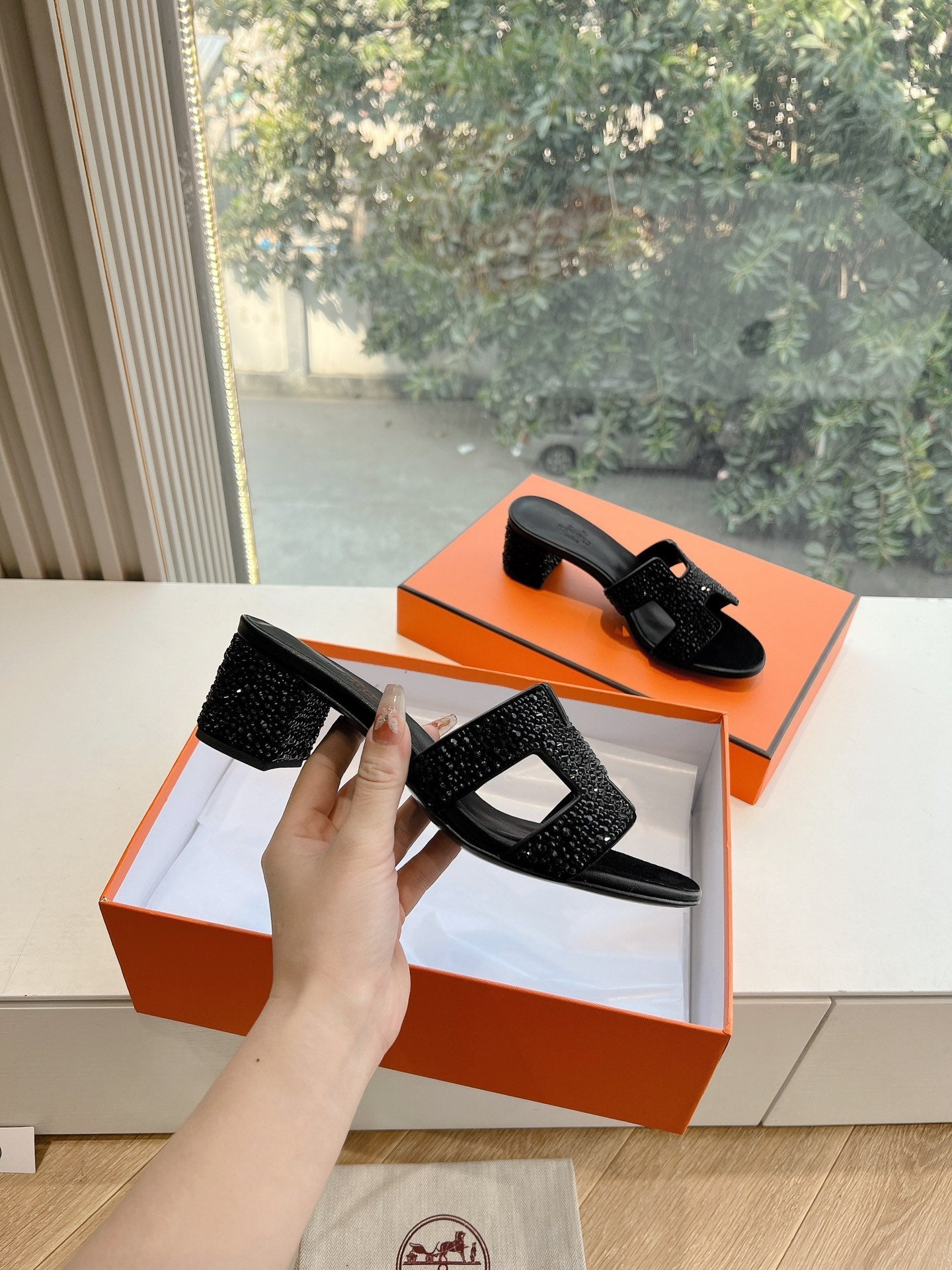 HM 25C Oasis Sandal Black Leather With Rhinestone 202835