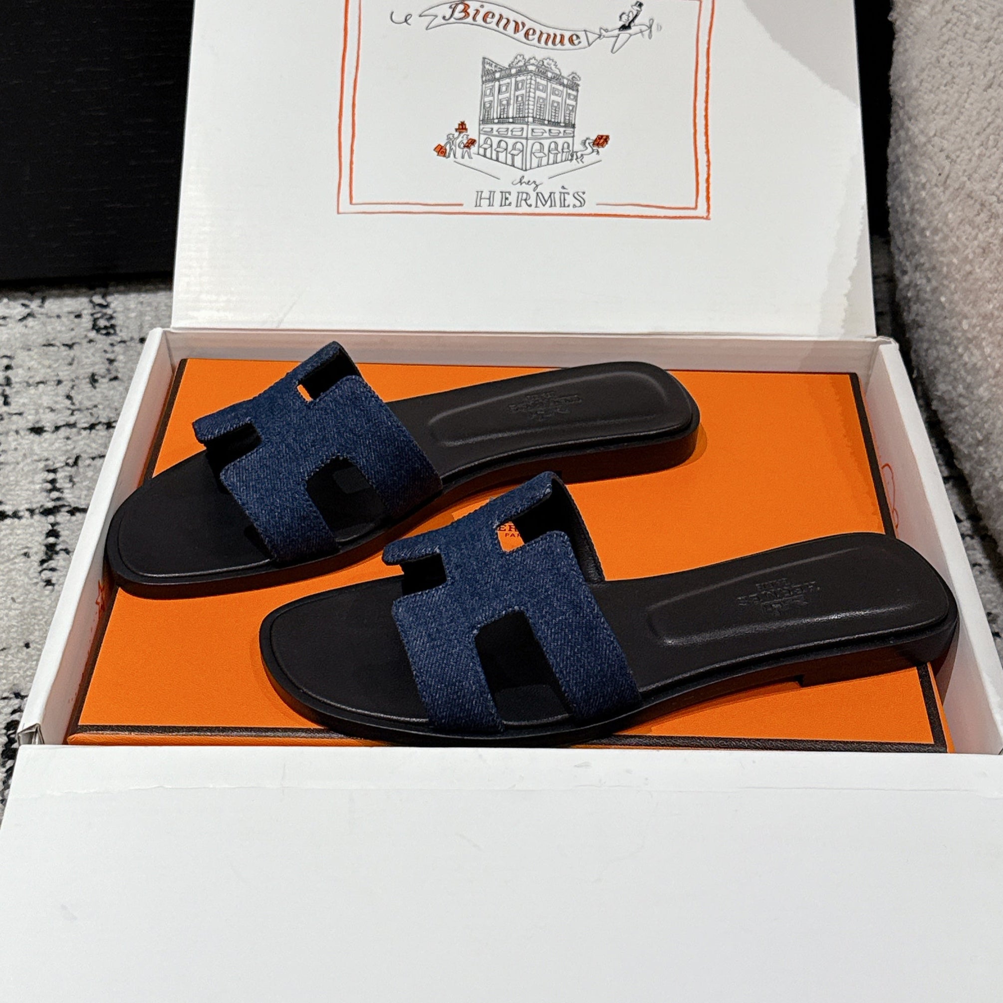 HM 25 Oran Sandal White Calfskin Blue Denim
