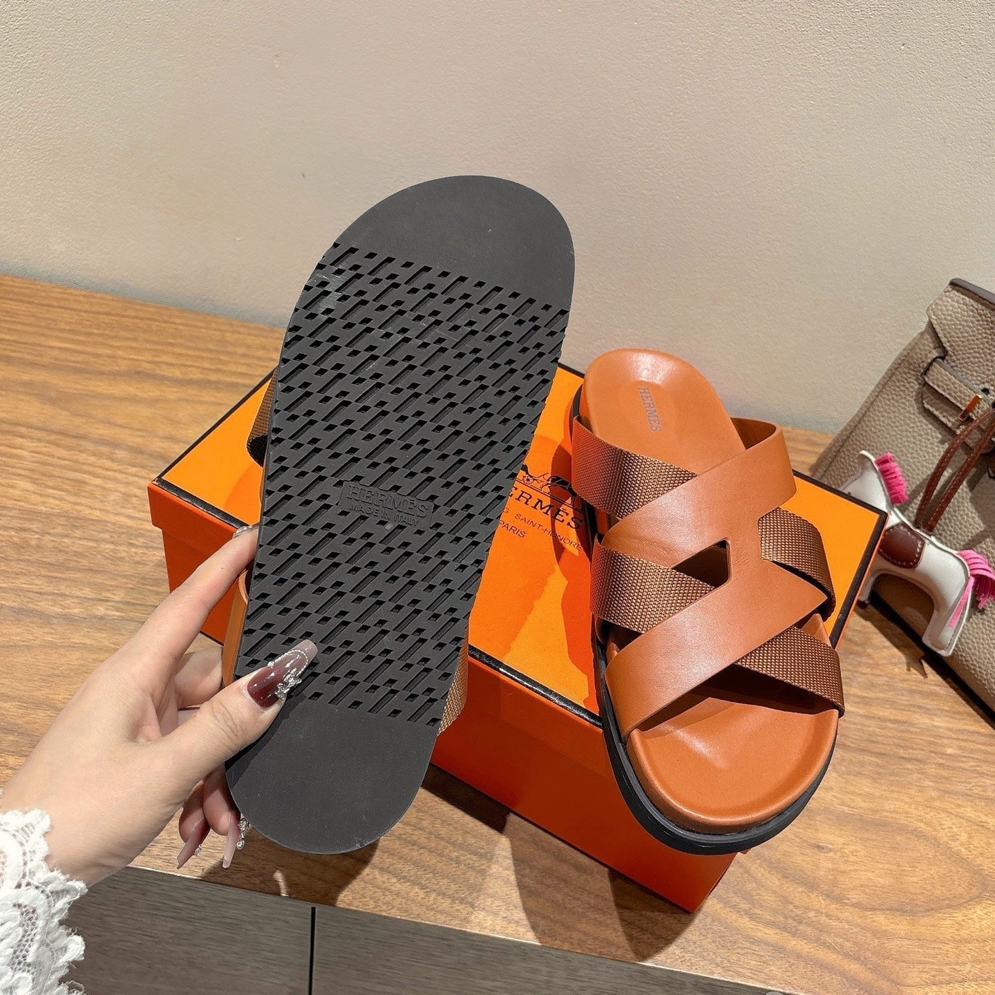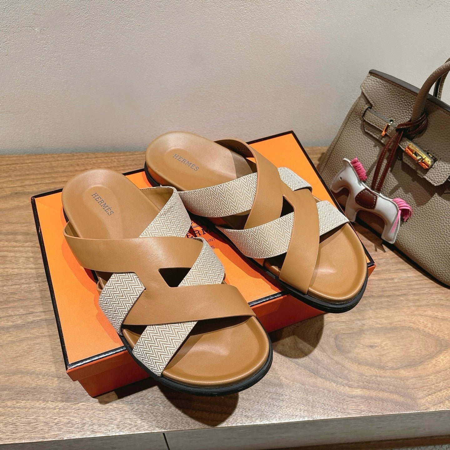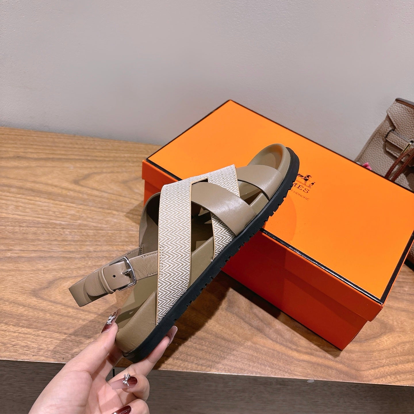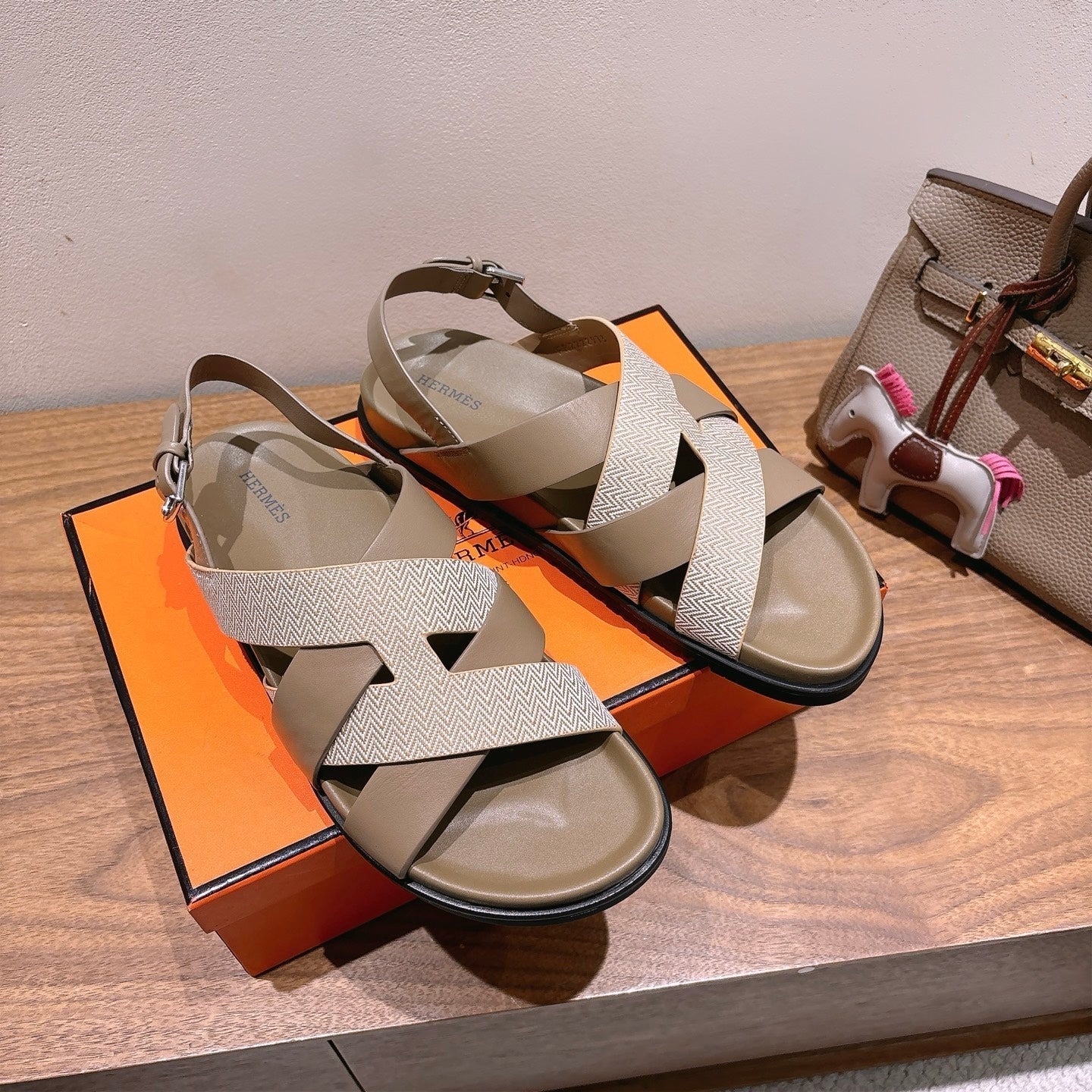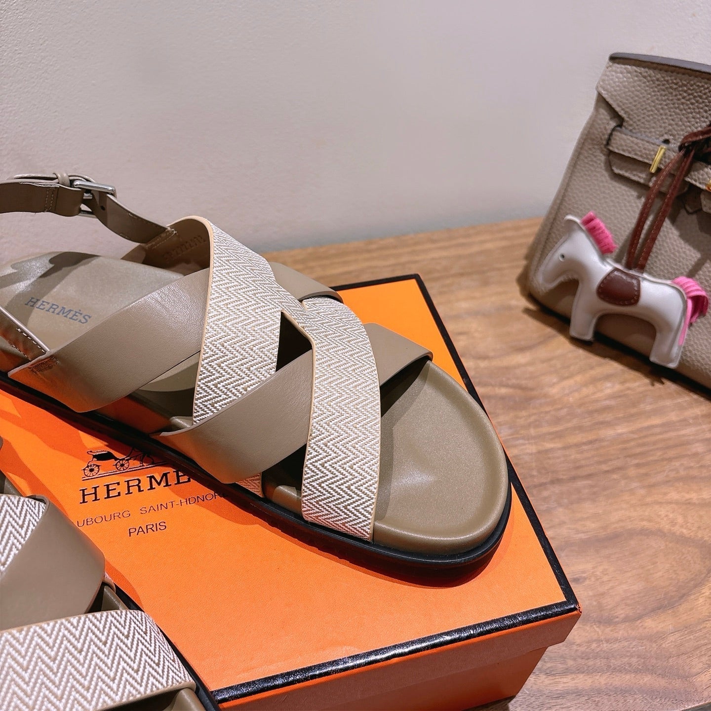 HM 25 Heracles Sandal Brown Calfskin Dark Grey Canvas