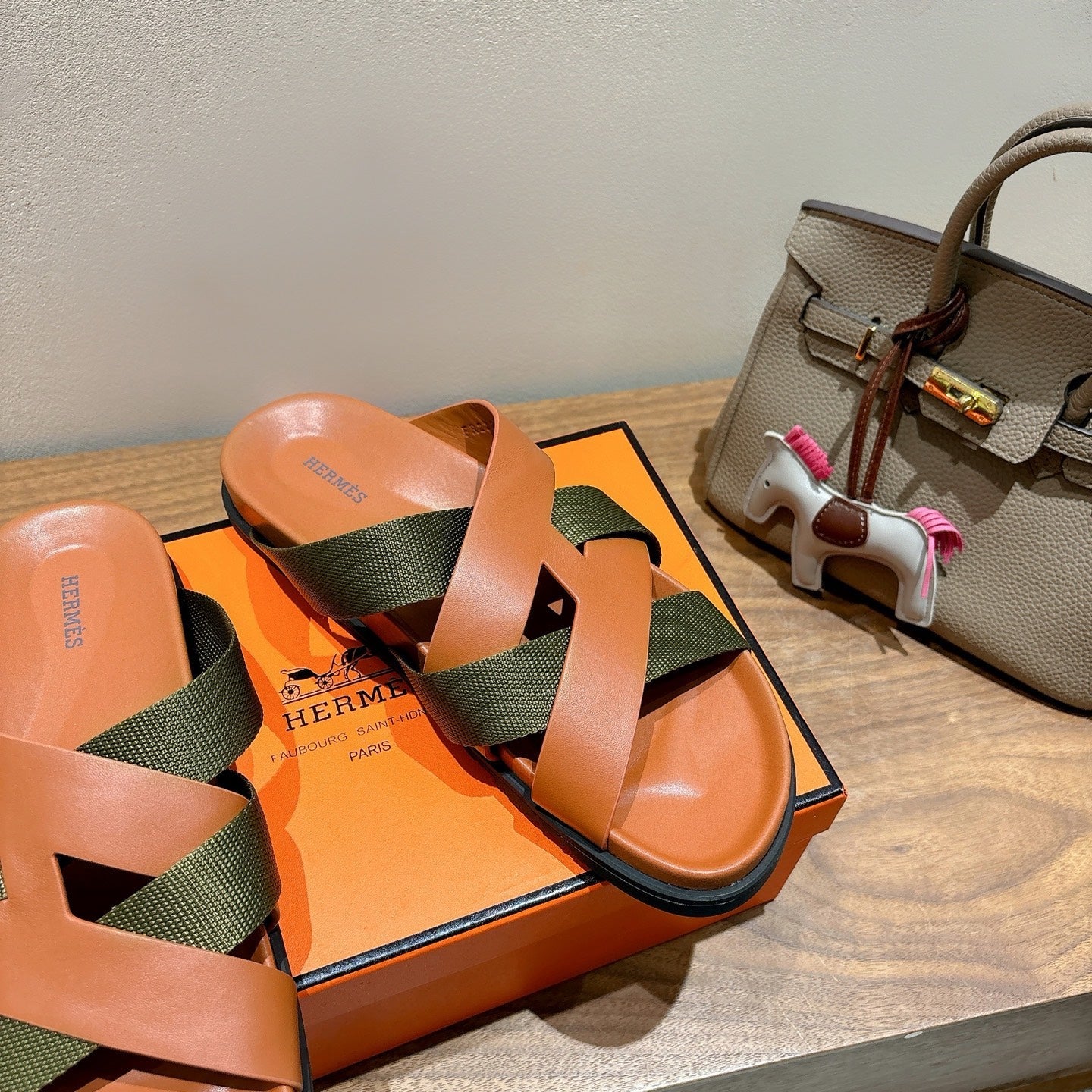 HM 25 Heracles Sandal Brown Calfskin Light Pink Canvas