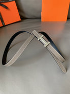 FOCUS BELT SILVER BUCKLE GREY AND BLACK REVERSIBLE LEATHER 1.3CM
