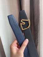 H BELT HORSE BUCKLE BLUE BLACK LEATHER REVERSIBLE 3.8CM
