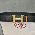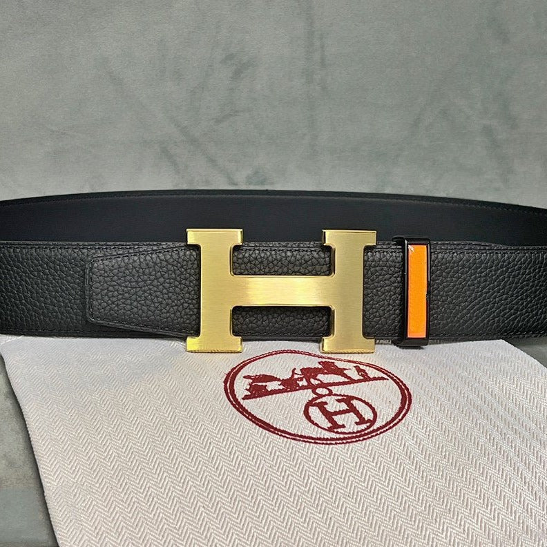 H BELT GOLD BUCKLE 38 MM SMOOTH BLACK LEATHER