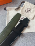 H CONSTANCE REVERSIBLE BELT 38MM BLACK BUCKLE BLACK GREEN LEATHER