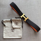 H CONTANCE BELT 38MM ORANGE BLACK LEATHER