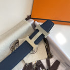 H CONTANCE BELT 38MM SILVER BUCKLE BLACK BLUE LEATHER