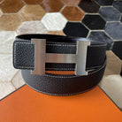 H CONTANCE BELT 38MM SILVER BUCKLE BLACK LEATHER