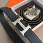 H CONTANCE BELT 38MM SILVER BUCKLE DARK BLUE LEATHER