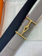 H JUMBO BELT 40MM GOLD BUCKLE DARK BLUE GREY LEATHER