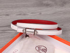 H WOMEN'S BELT 13MM SILVER BUCKLE RED WHITE LEATHER