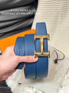 HM 5382 BELT GOLD BUCKLE & REVERSIBLE NAVY BLUE LEATHER STRAP 38MM