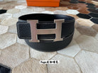 HM CONSTANCE BELT BUCKLE & REVERSIBLE BLACK LEATHER STRAP 38MM SILVER HARDWARE