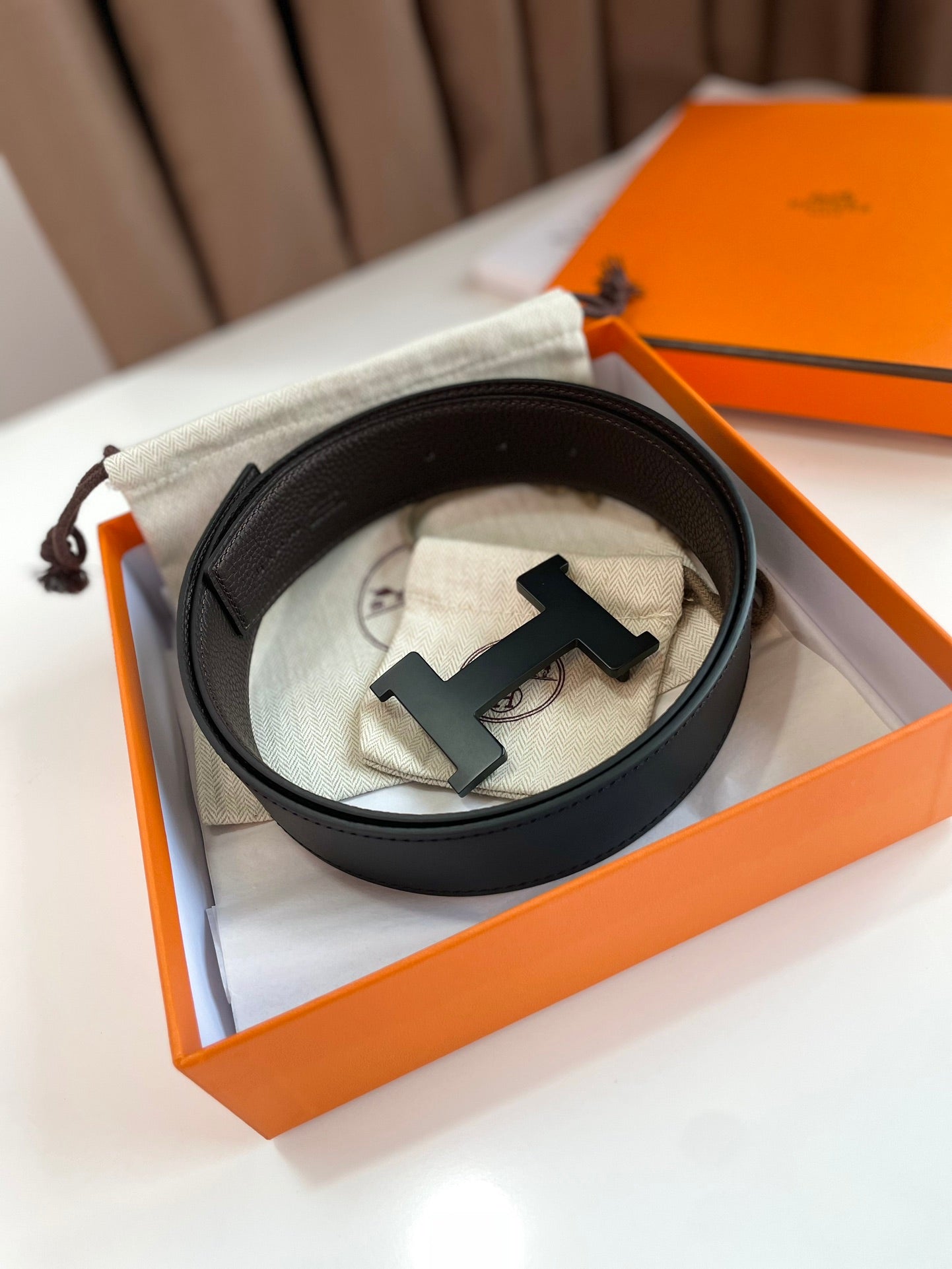 HM CONSTANCE BELT BUCKLE & REVERSIBLE CHOCOLATE BROWN AND BLACK LEATHER STRAP 38MM