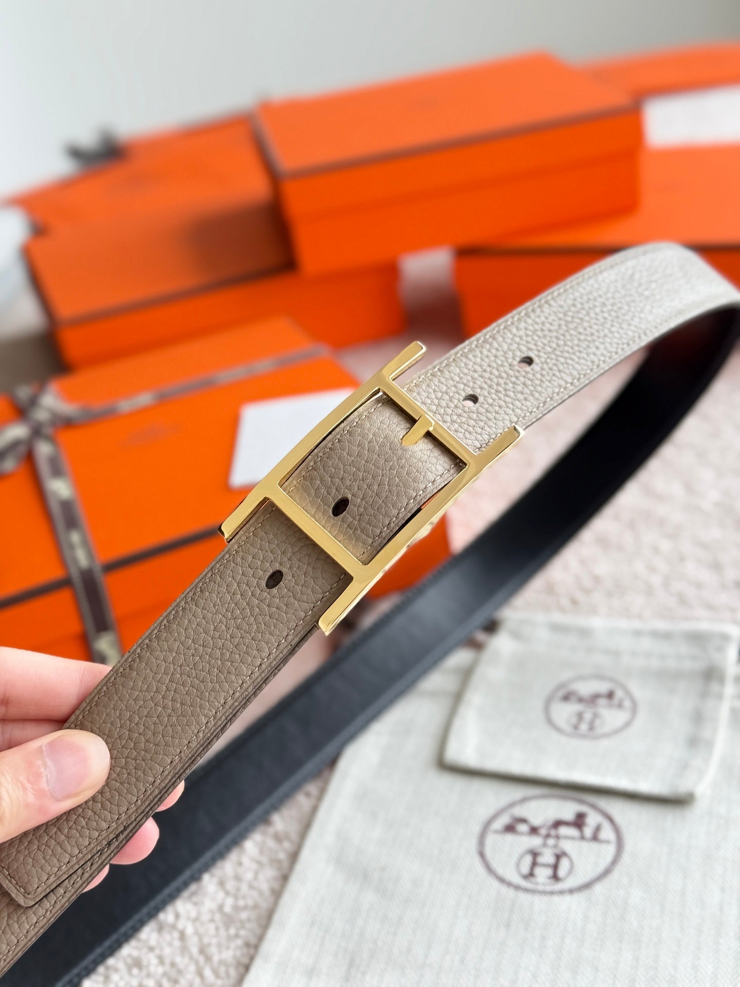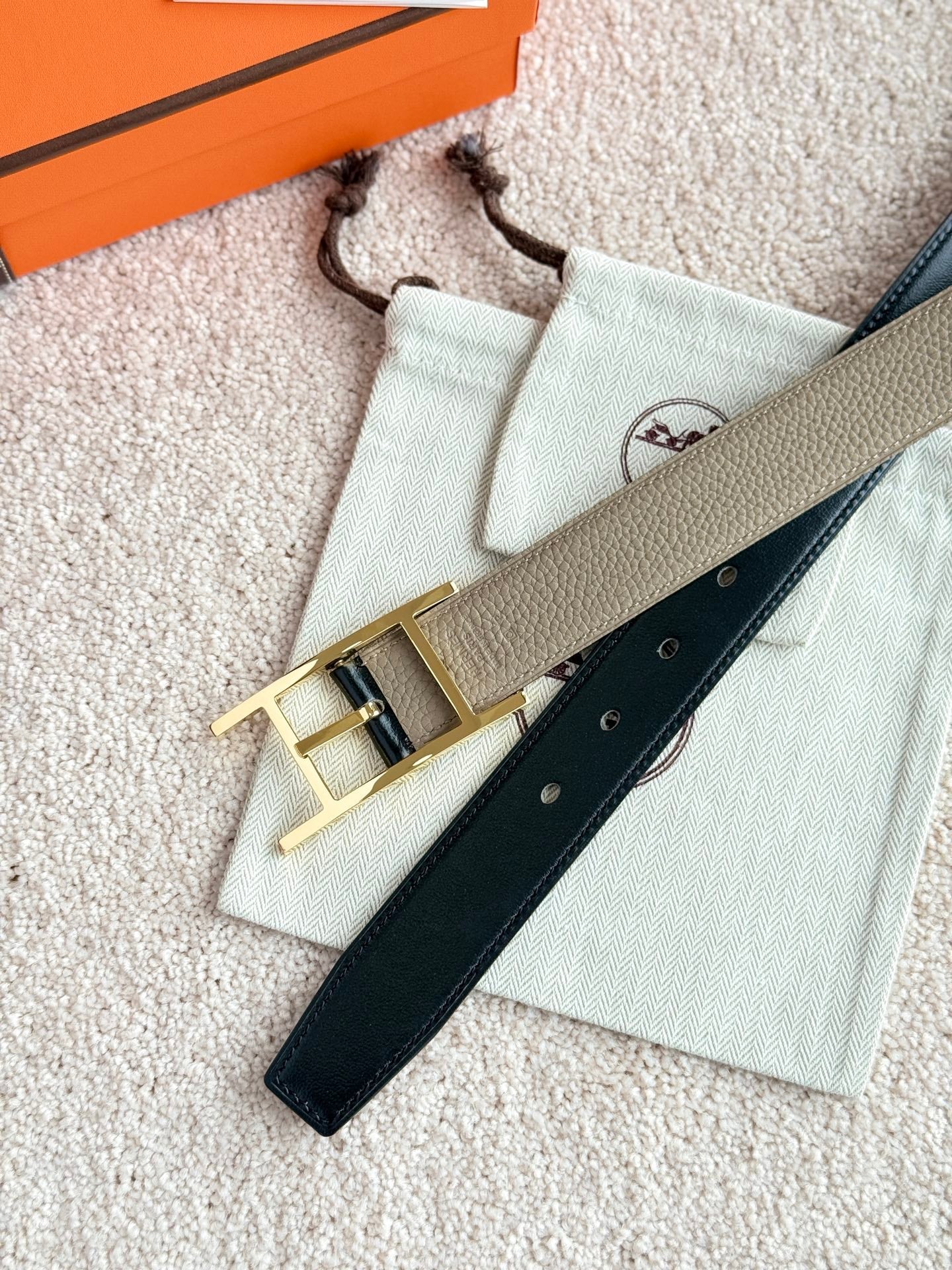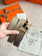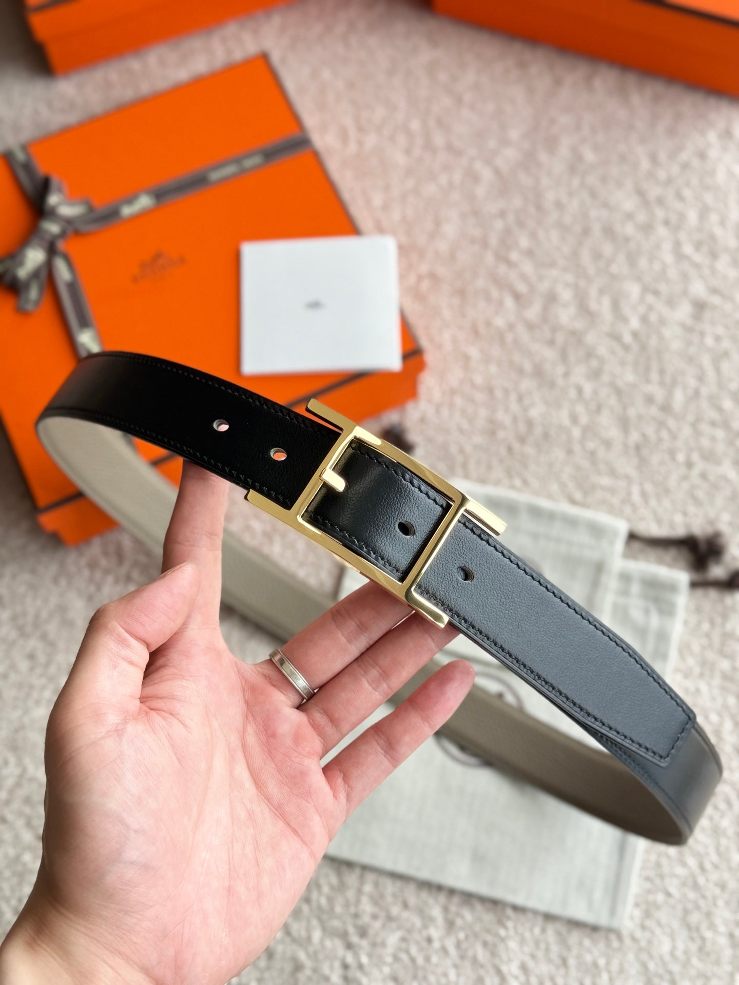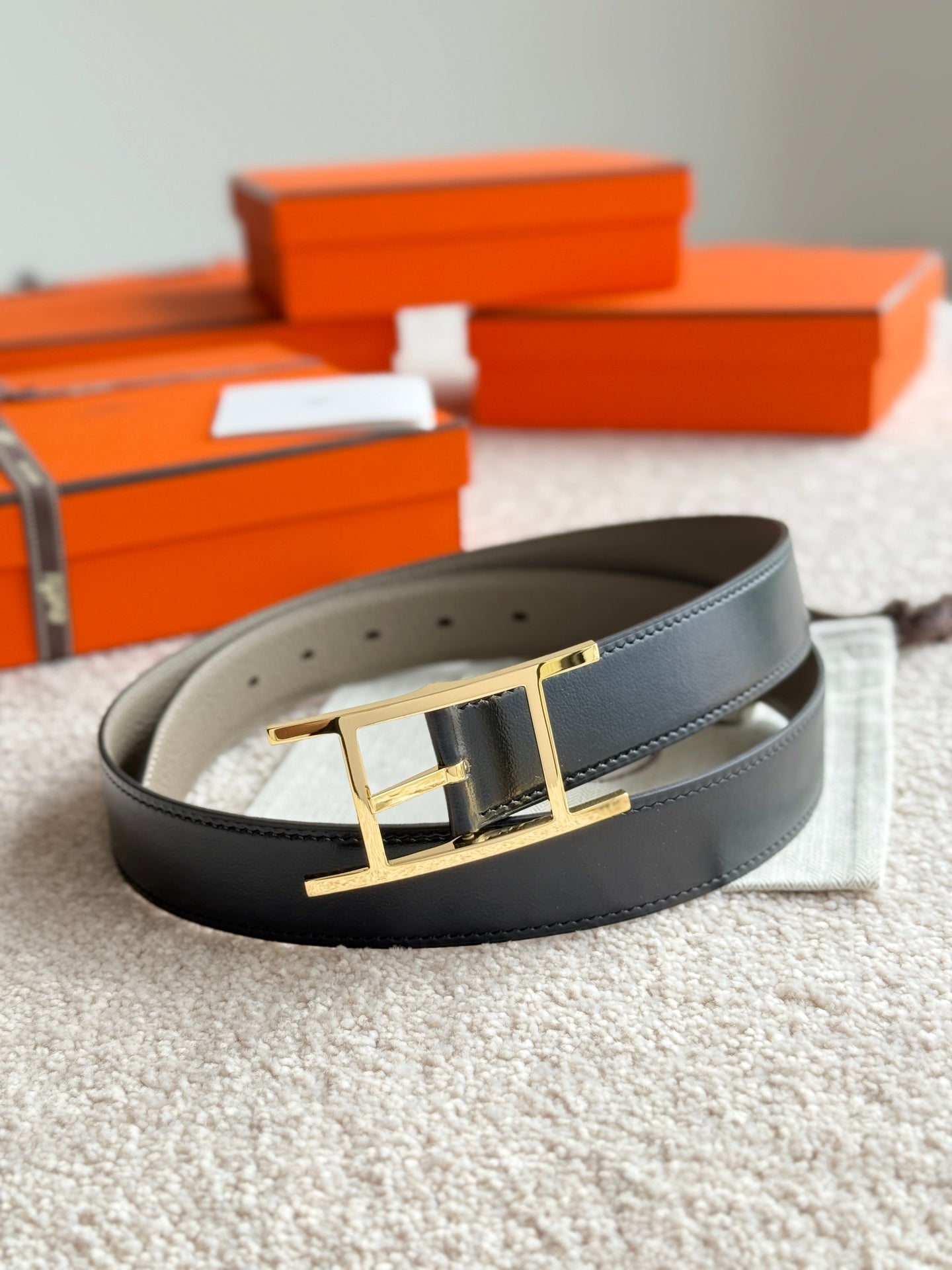 HM Gold Quentin Reversible 32mm Belt Black Beige Leather 188089