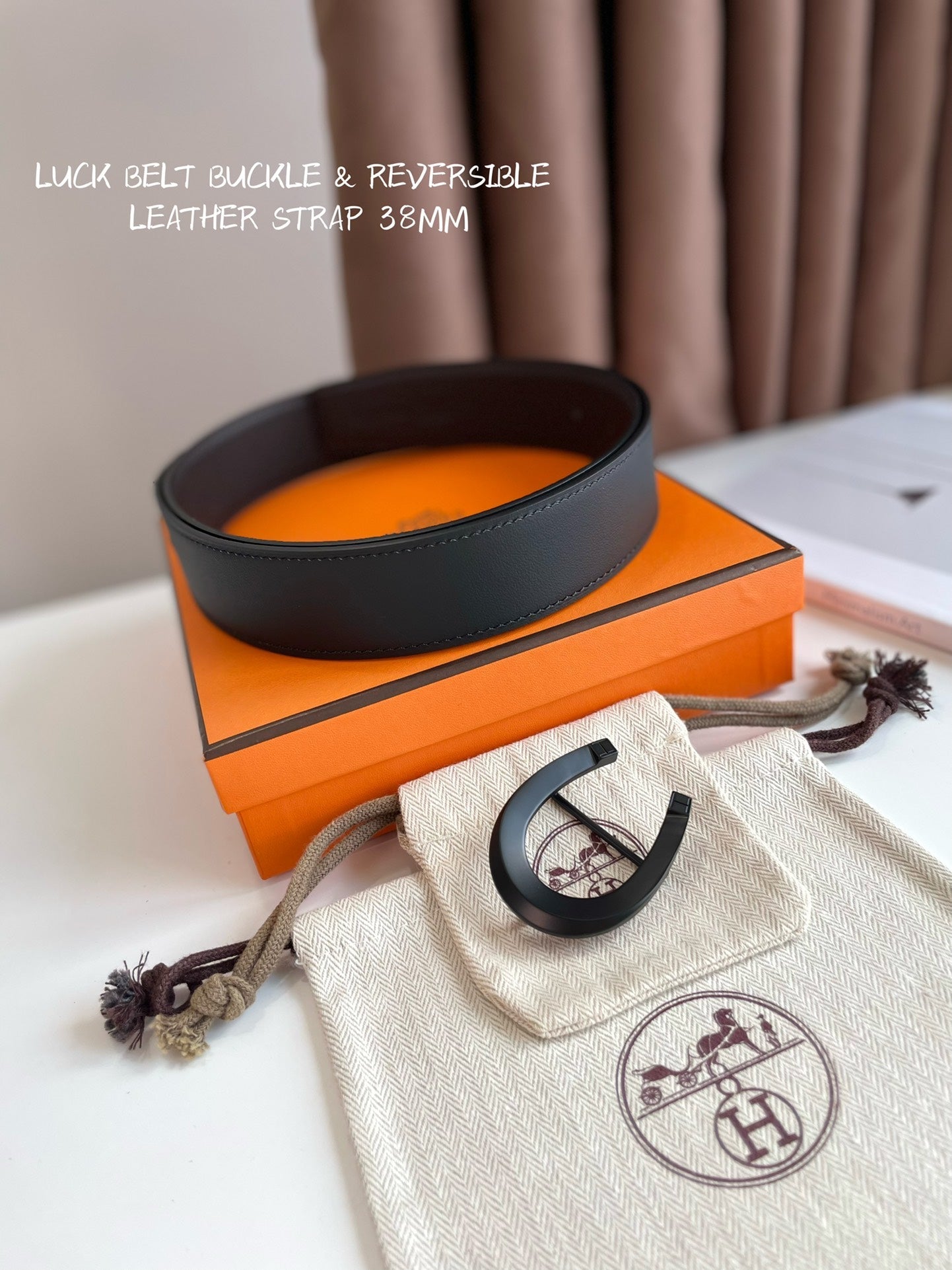 HM LUCK BELT BUCKLE & REVERSIBLE CHOCOLATE BROWN AND BLACK LEATHER STRAP 38MM