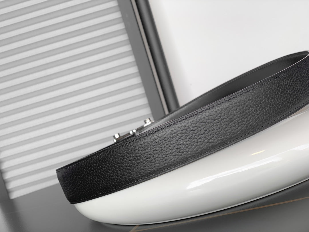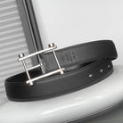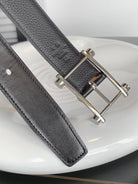 HM REVERSIBLE BLACK LEATHER STRAP 32 MM SILVER HARDWARE