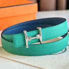 HM Silver Mors H buckle & Reversible 24 mm belt Blue Green leather 125358