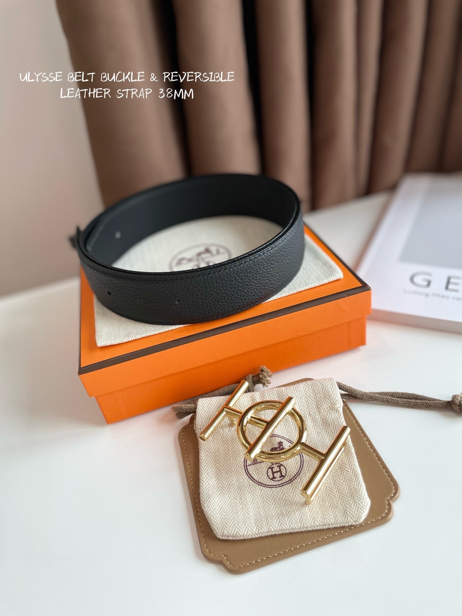 ULYSSE BELT BUCKLE & REVERSIBLE BLACK LEATHER STRAP 38MM GOLD HARDWARE