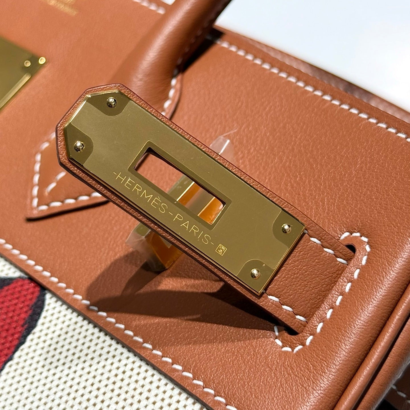 HM Birkin 30cm Gold Swift Leather Grey Horse Canvas Gold Hardware