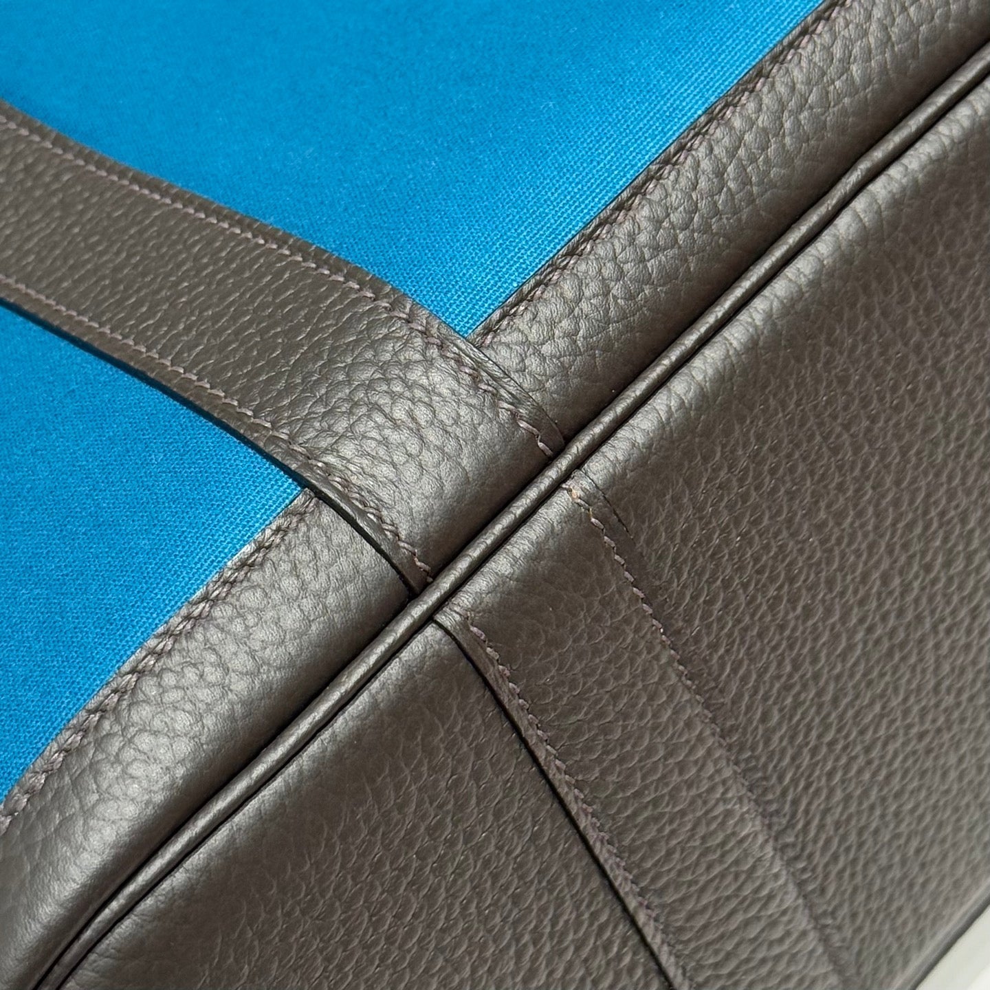HM Garden Party 30cm Bag Chocolate Togo Blue Canvas