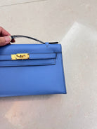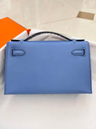 HM KELLY POCHETTE 22CM LIGHT BLUE SWIFT GOLD HARDWARE