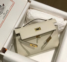 HM KELLY POCHETTE 22CM WHITE BEIGE SWIFT GOLD HARDWARE
