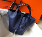 HM PICOTIN LOCK 18 NAVY EPSOM WITH BRAID STRAP