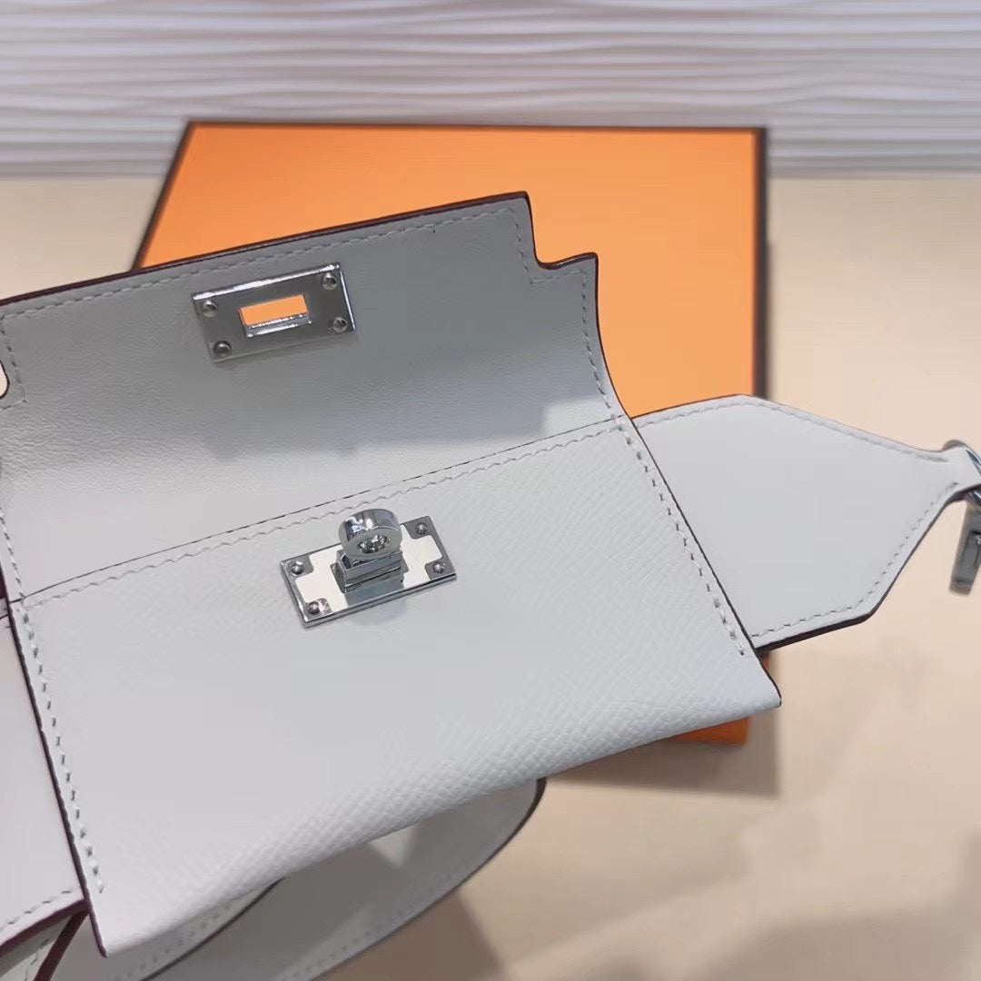 kelly pocket 50mm white epsom silver hardware shoulder strap