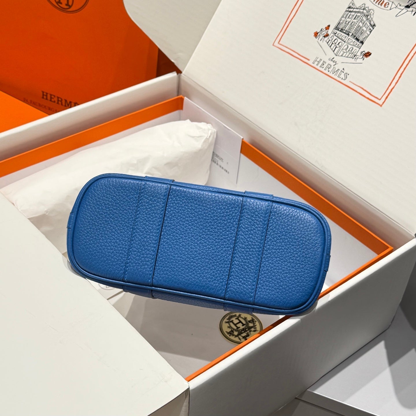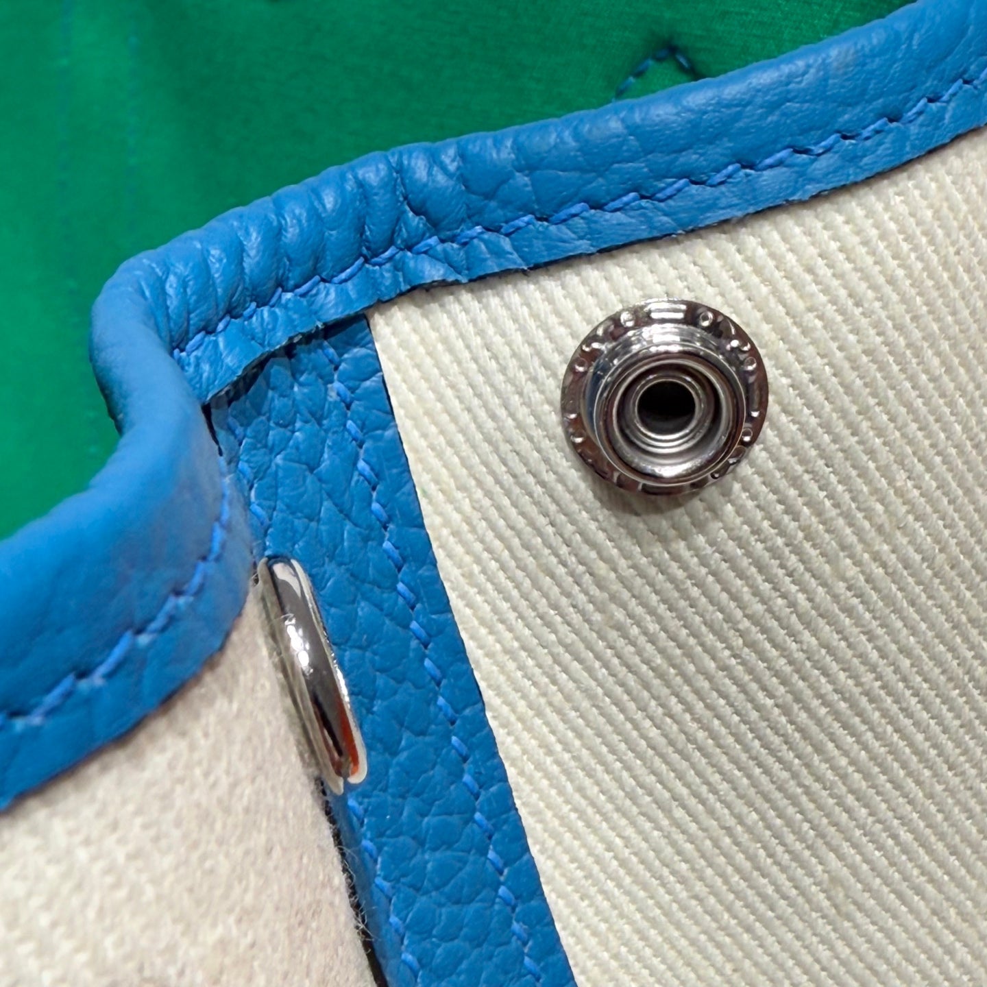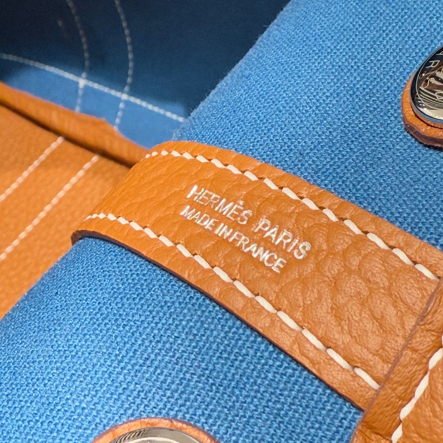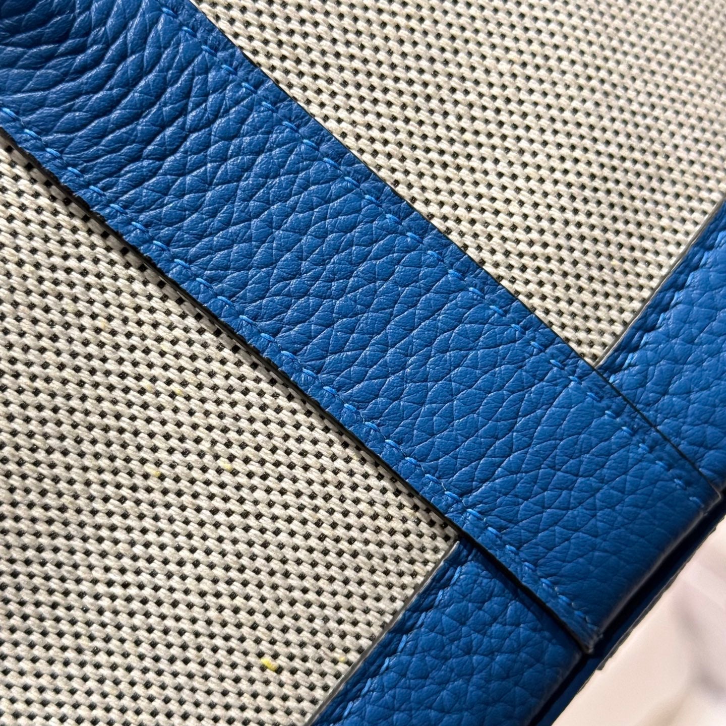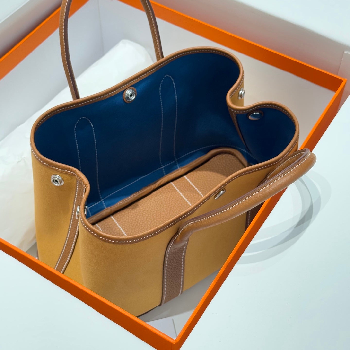 HM Garden Party 30cm Bag Blue Togo Cream Canvas