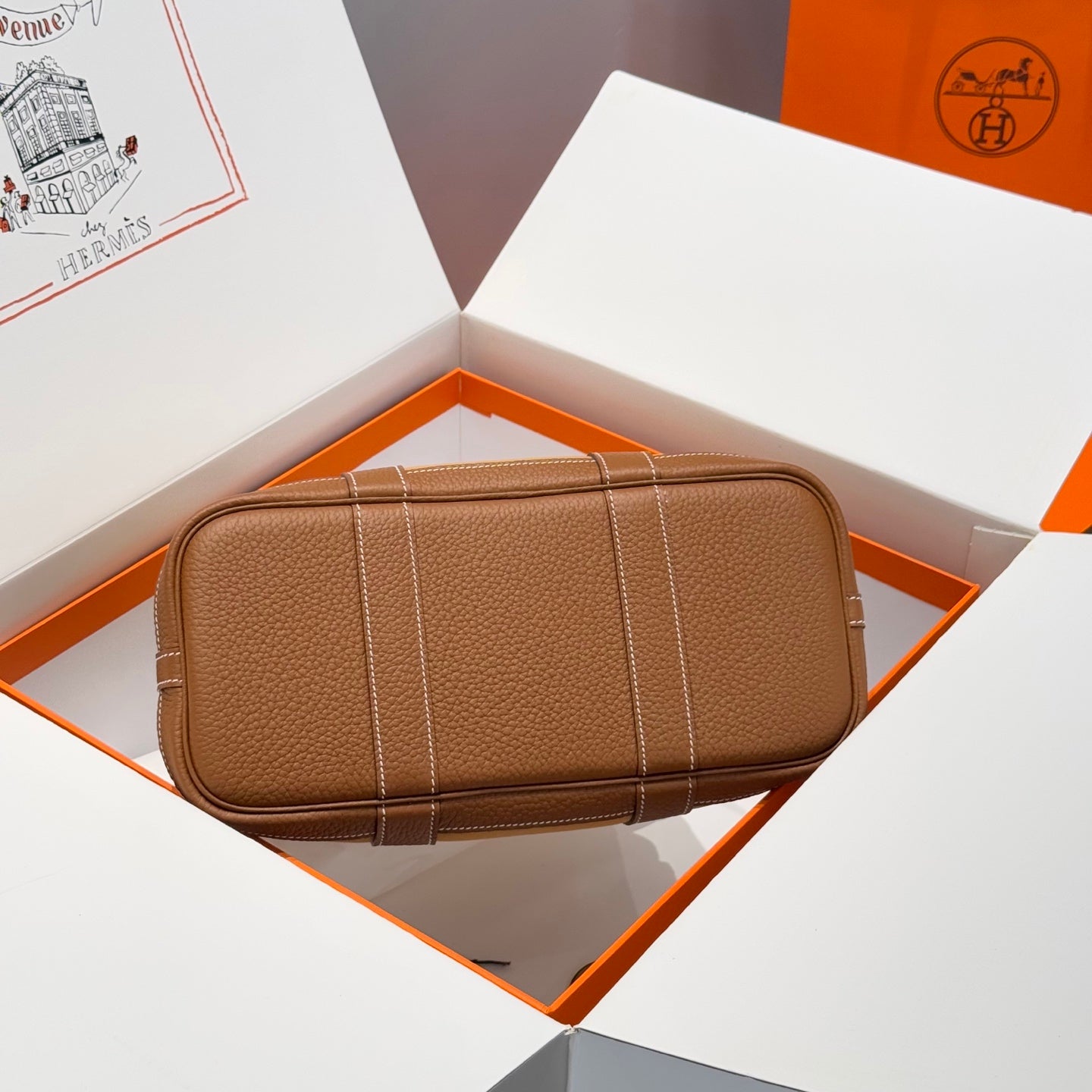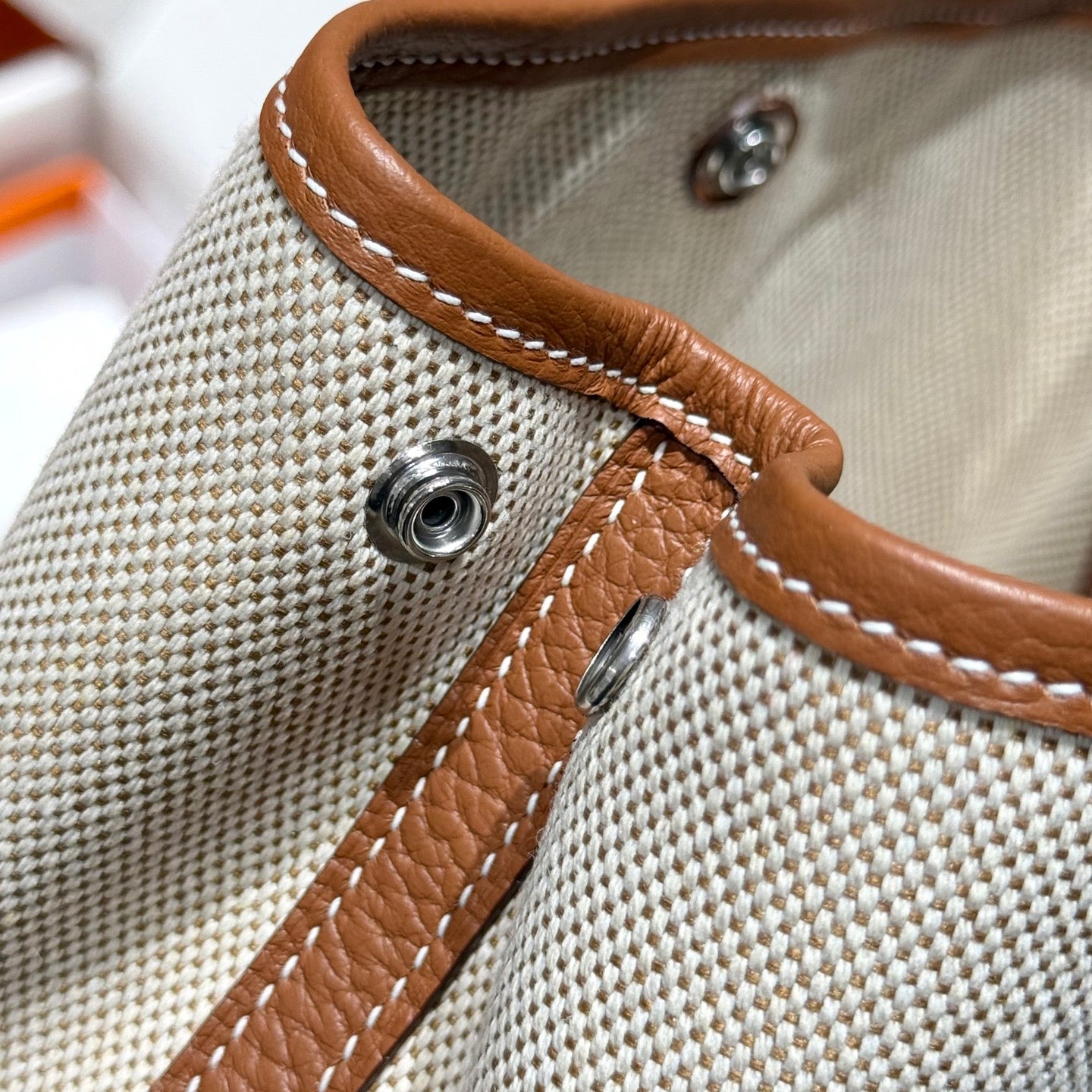 HM Garden Party 30cm Bag Etoupe Togo Orange Canvas
