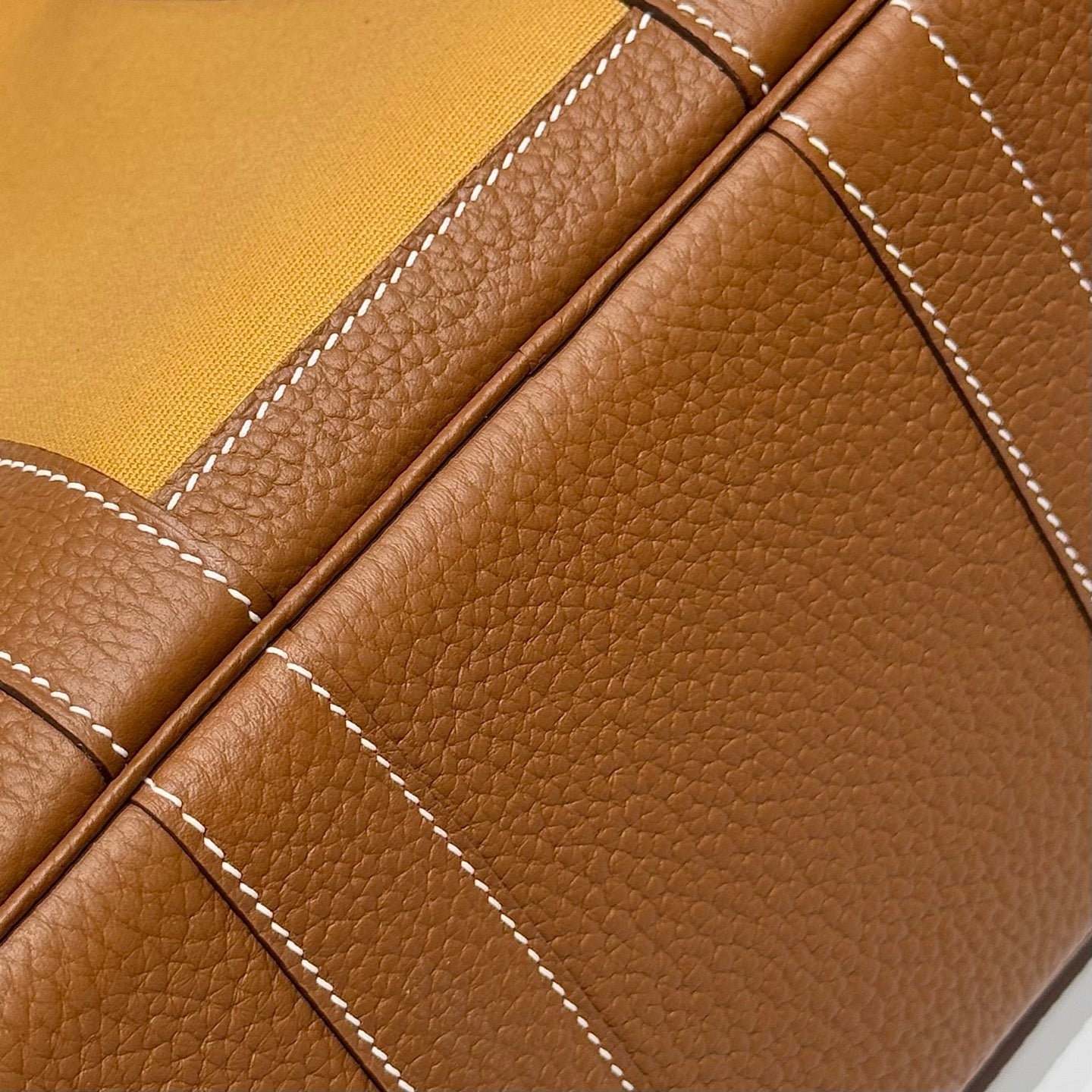 HM Garden Party 30cm Bag Brown Togo Yellow Canvas