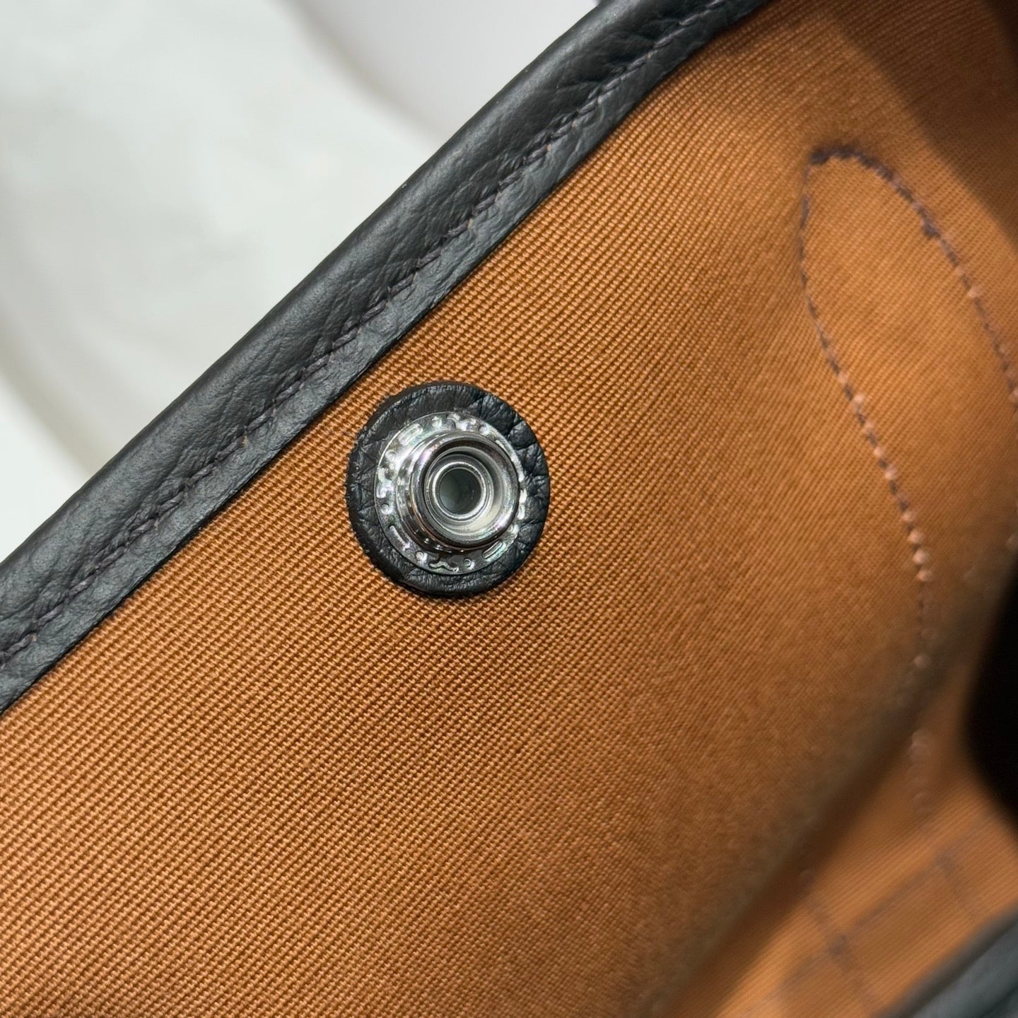 HM Garden Party 30cm Bag Black Togo Brown Canvas