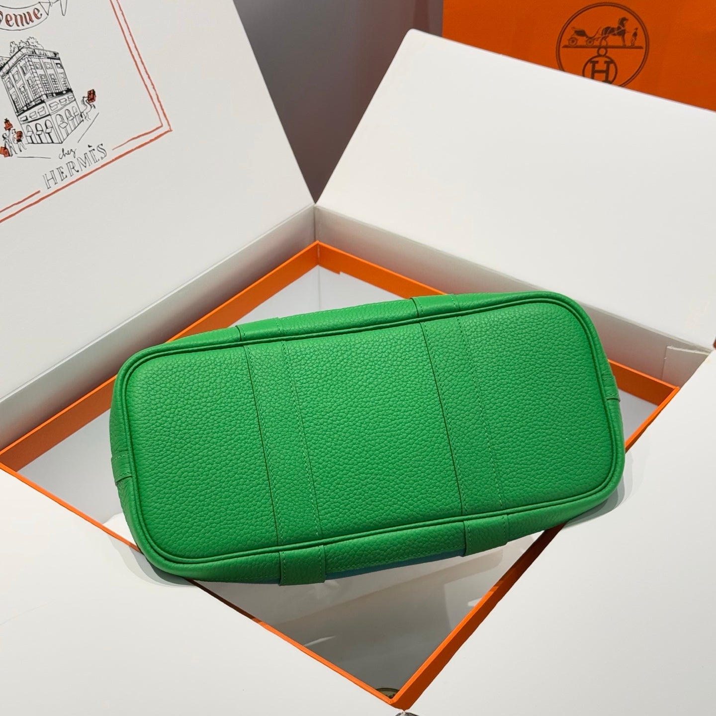 HM Garden Party 30cm Bag Vert Amande Togo Beige Canvas