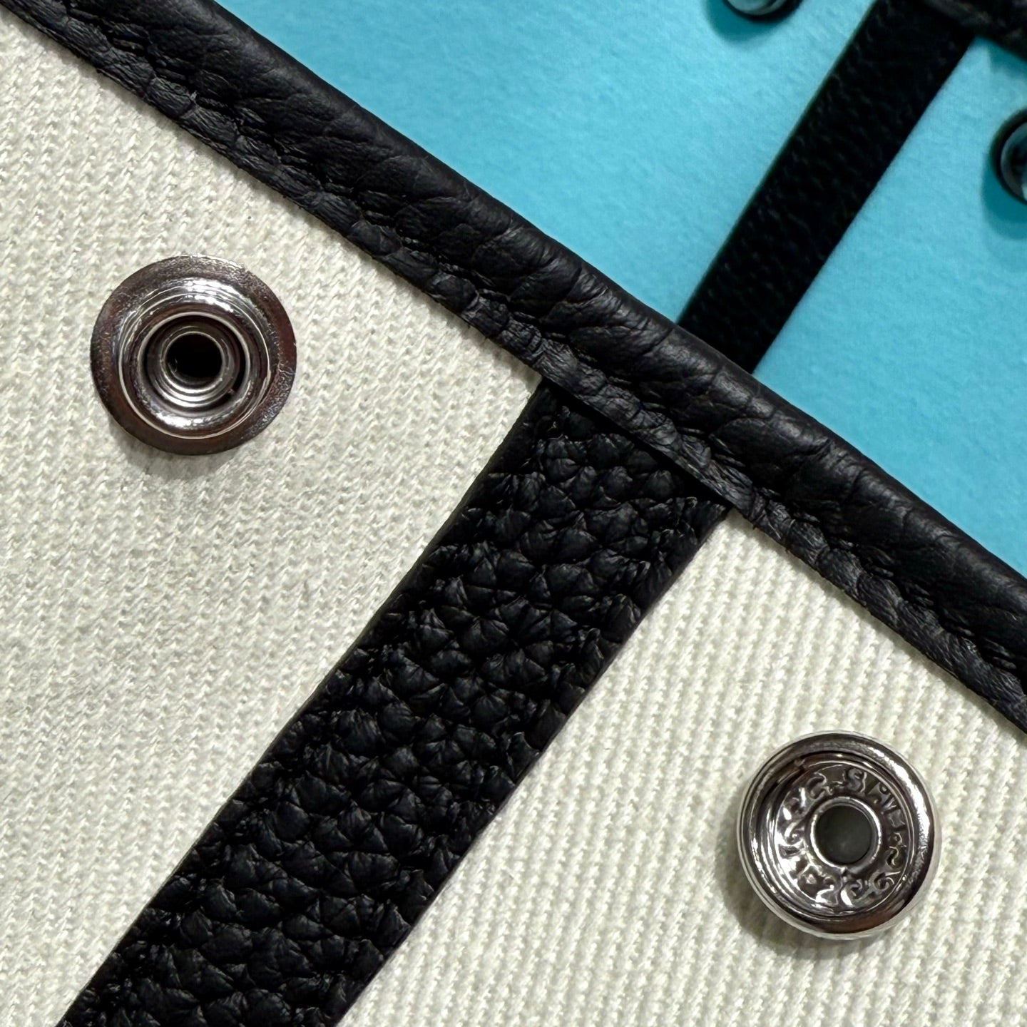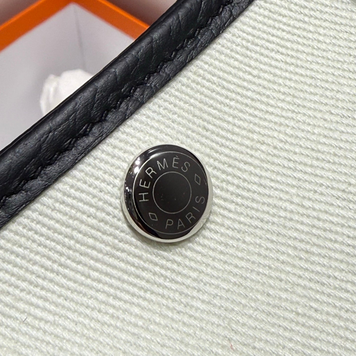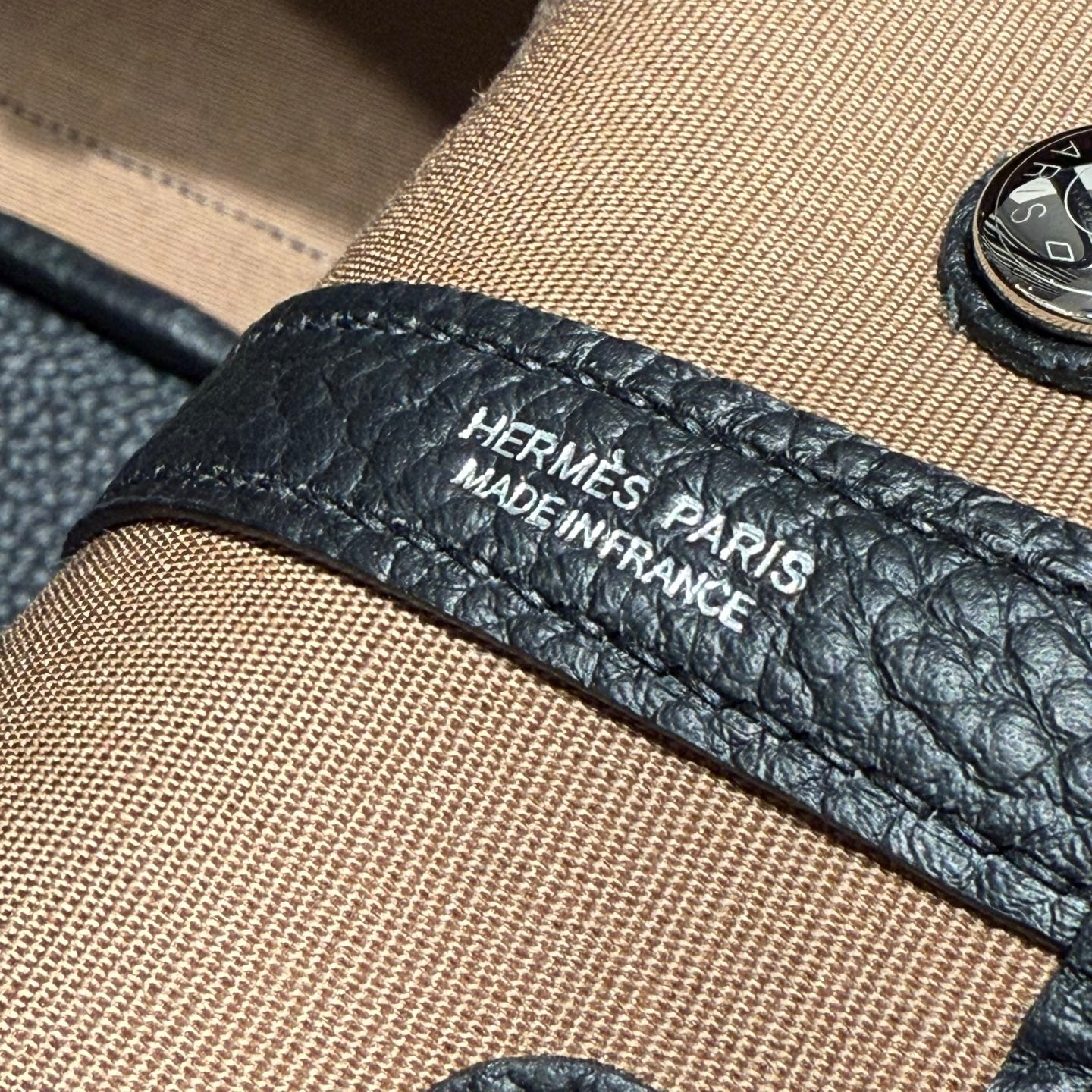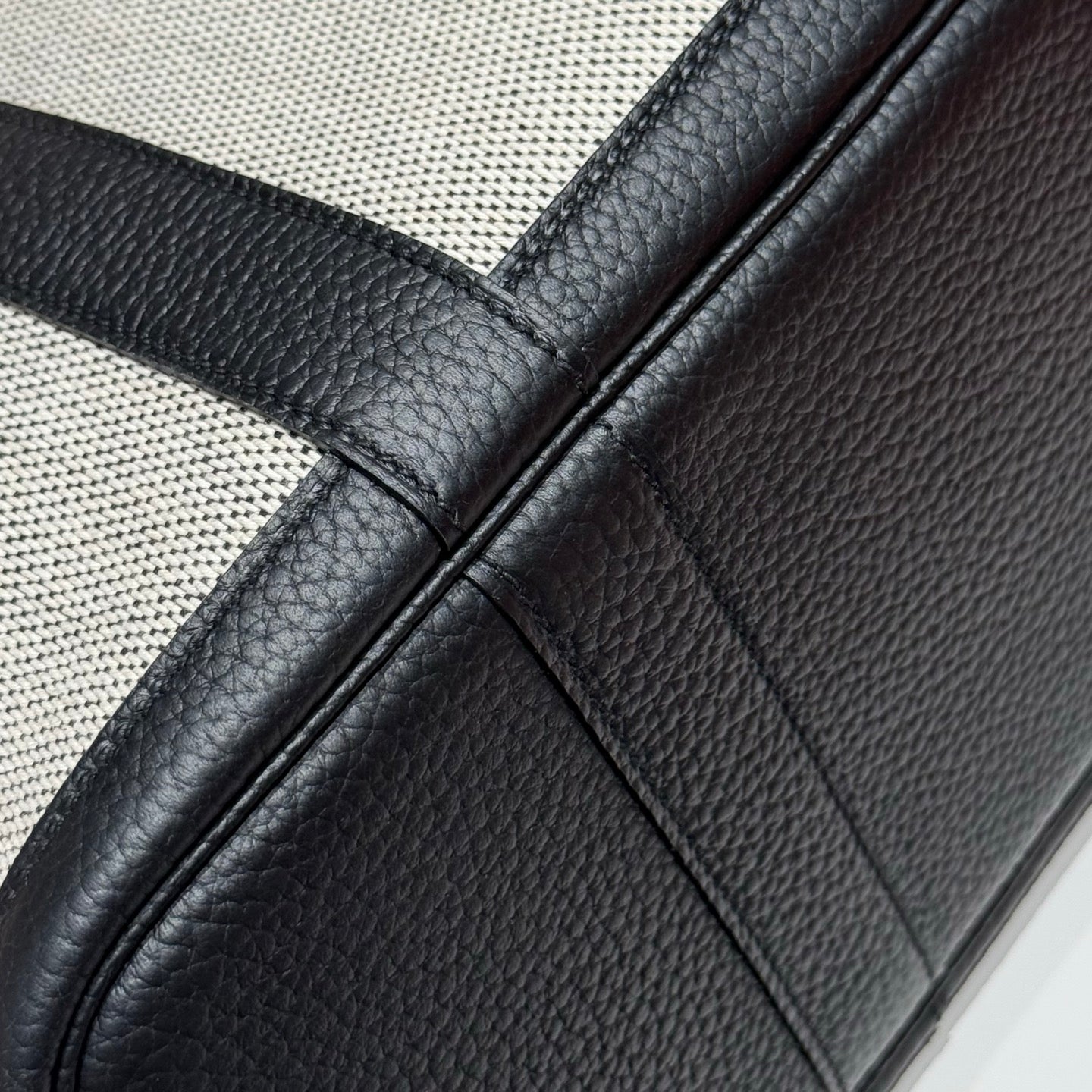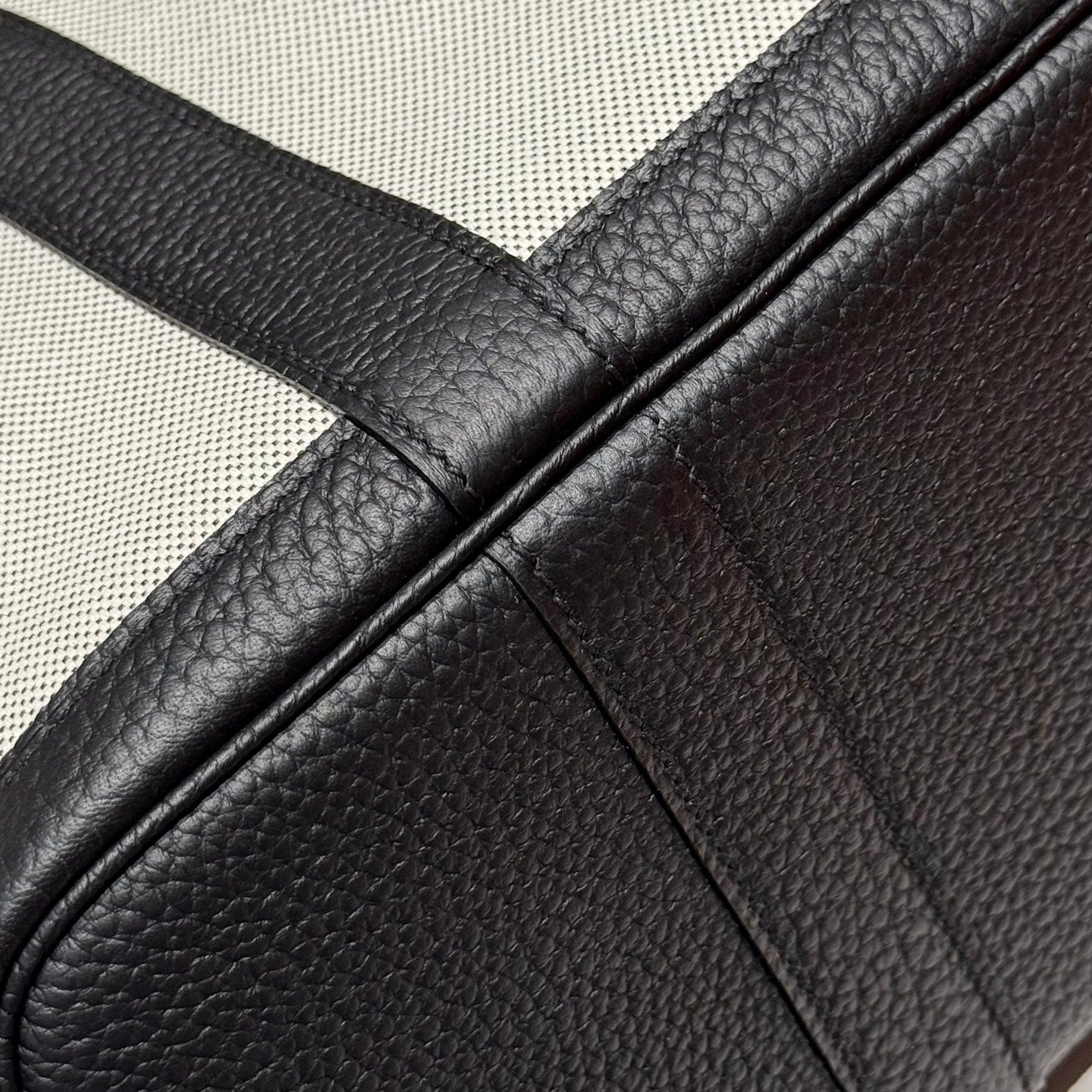 HM Garden Party 30cm Bag Black Togo Light Beige Canvas