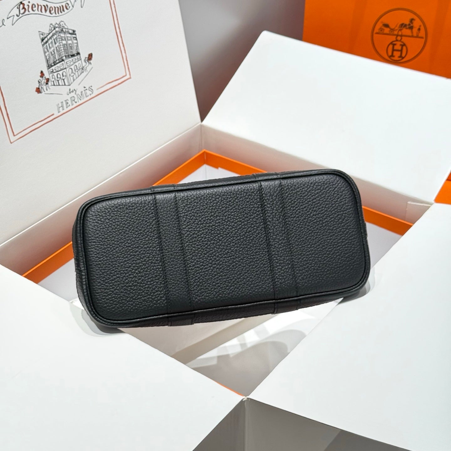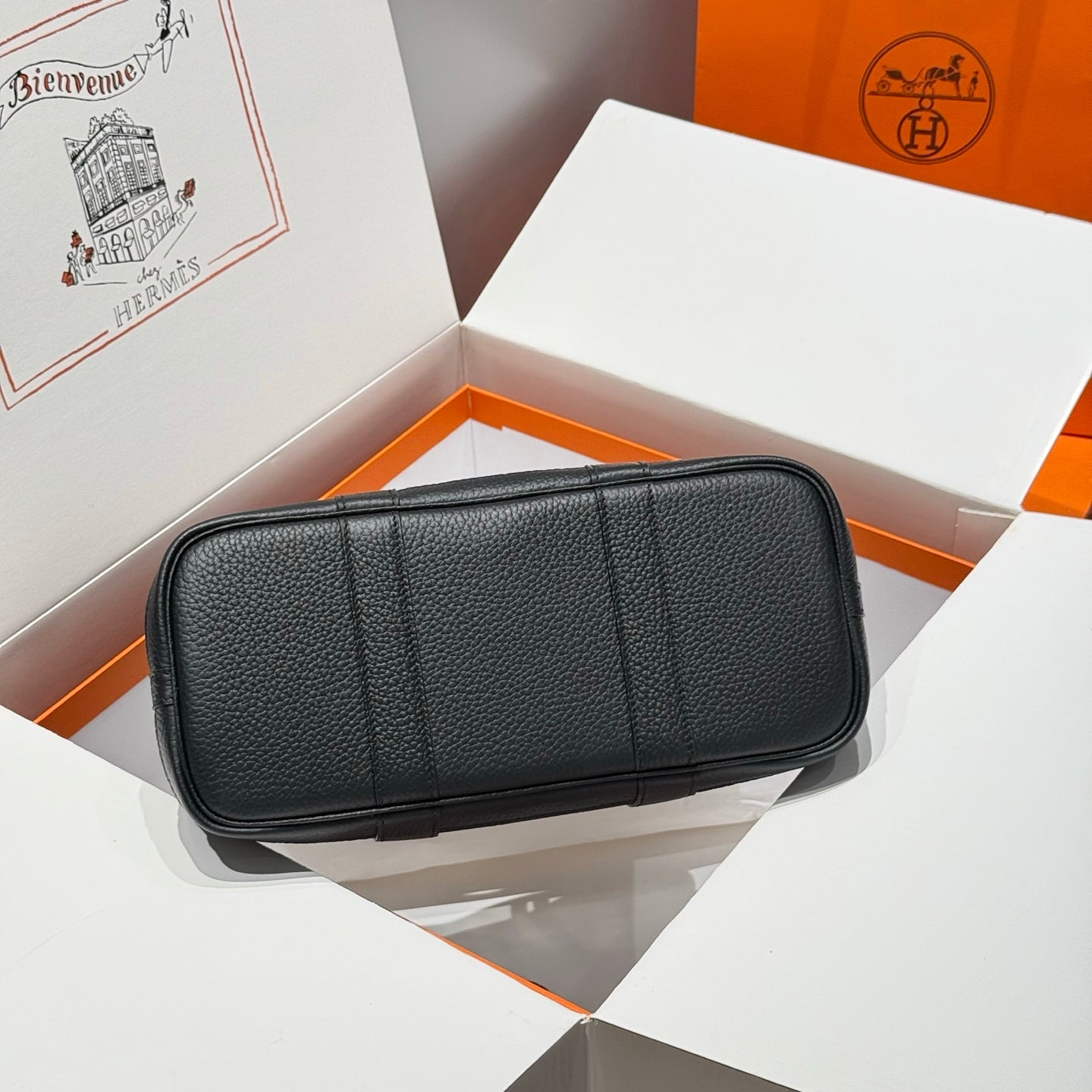 HM Garden Party 30cm Bag Black Togo White Canvas