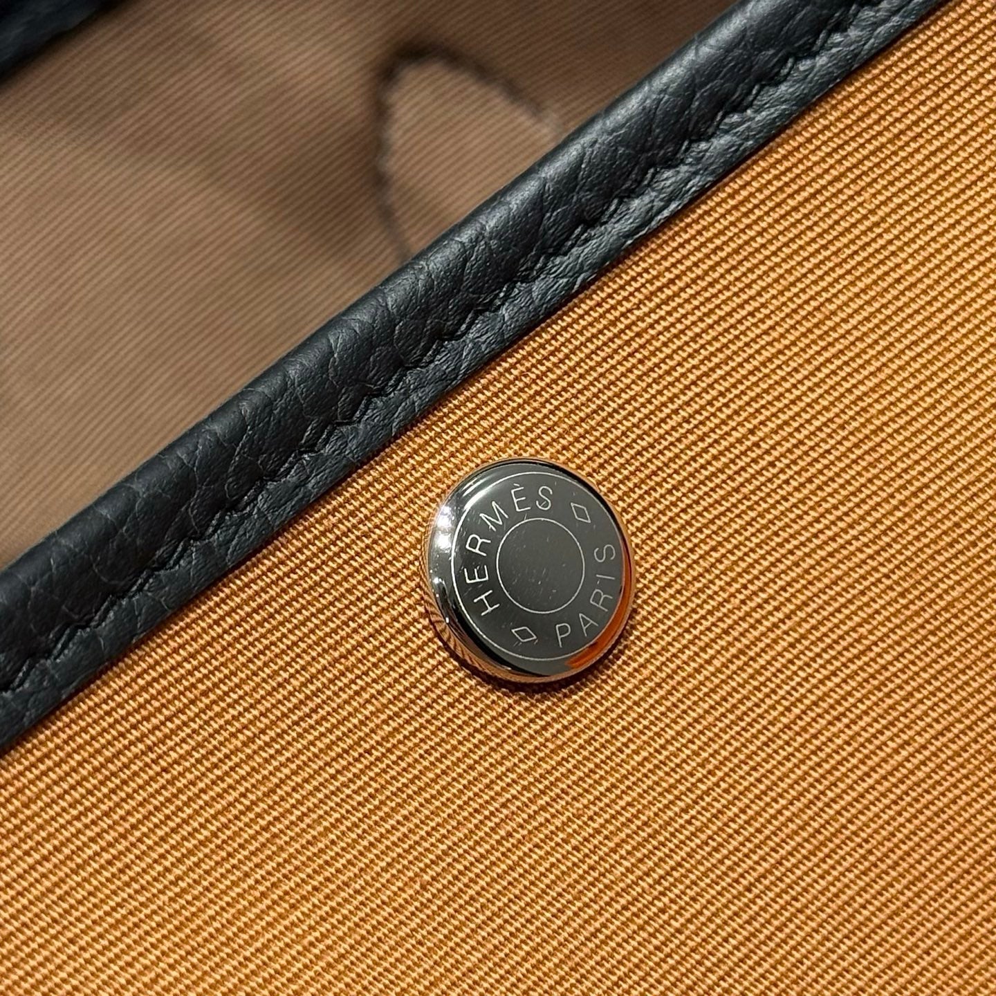 HM Garden Party 30cm Bag Gold Togo Dark Beige Canvas