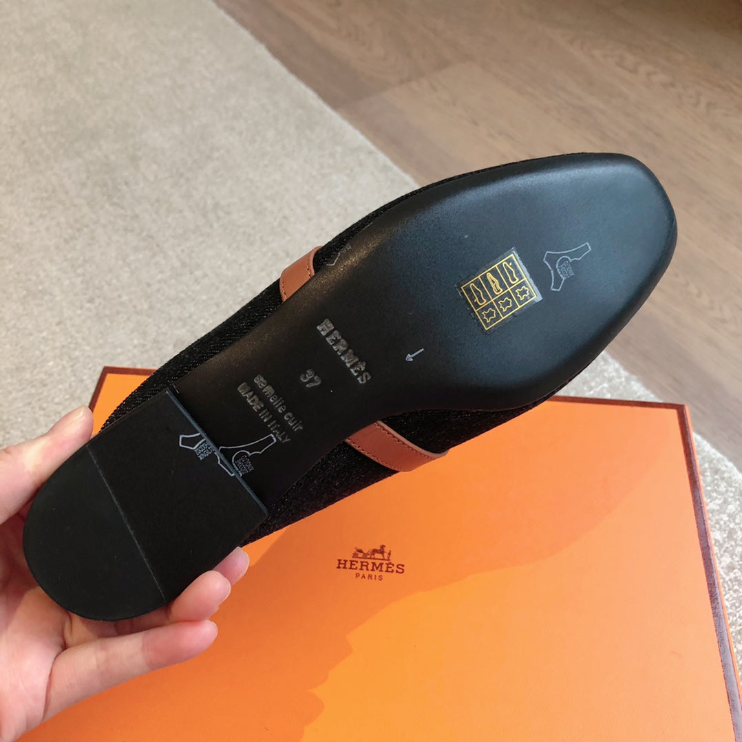 HM OZ Mule Denim Black Brown Cowhide 756853