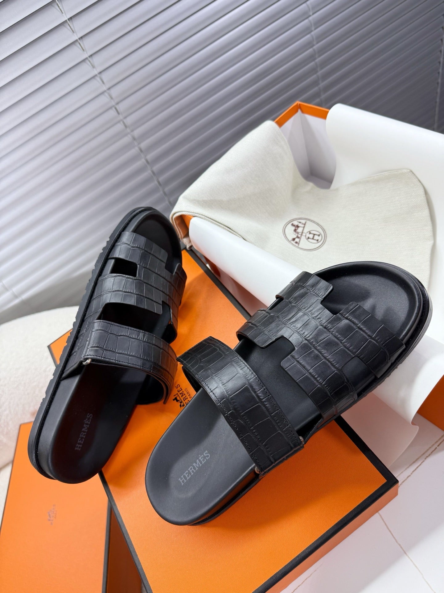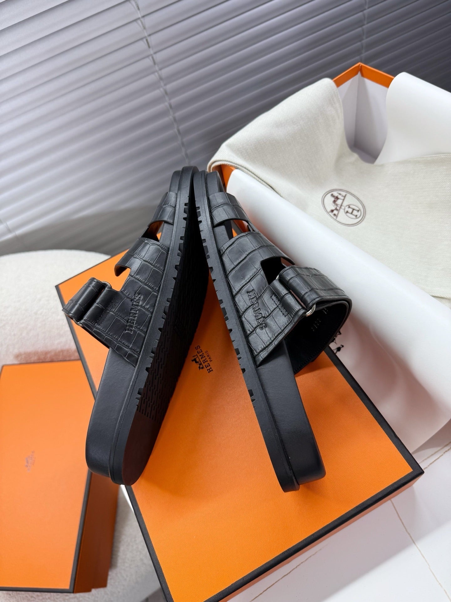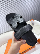 HM Chypre Sandal Black Crocodile Skin 205482