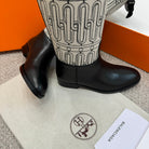 HM Jumping Boot In Black Mix White Calfskin And Burlap 973843