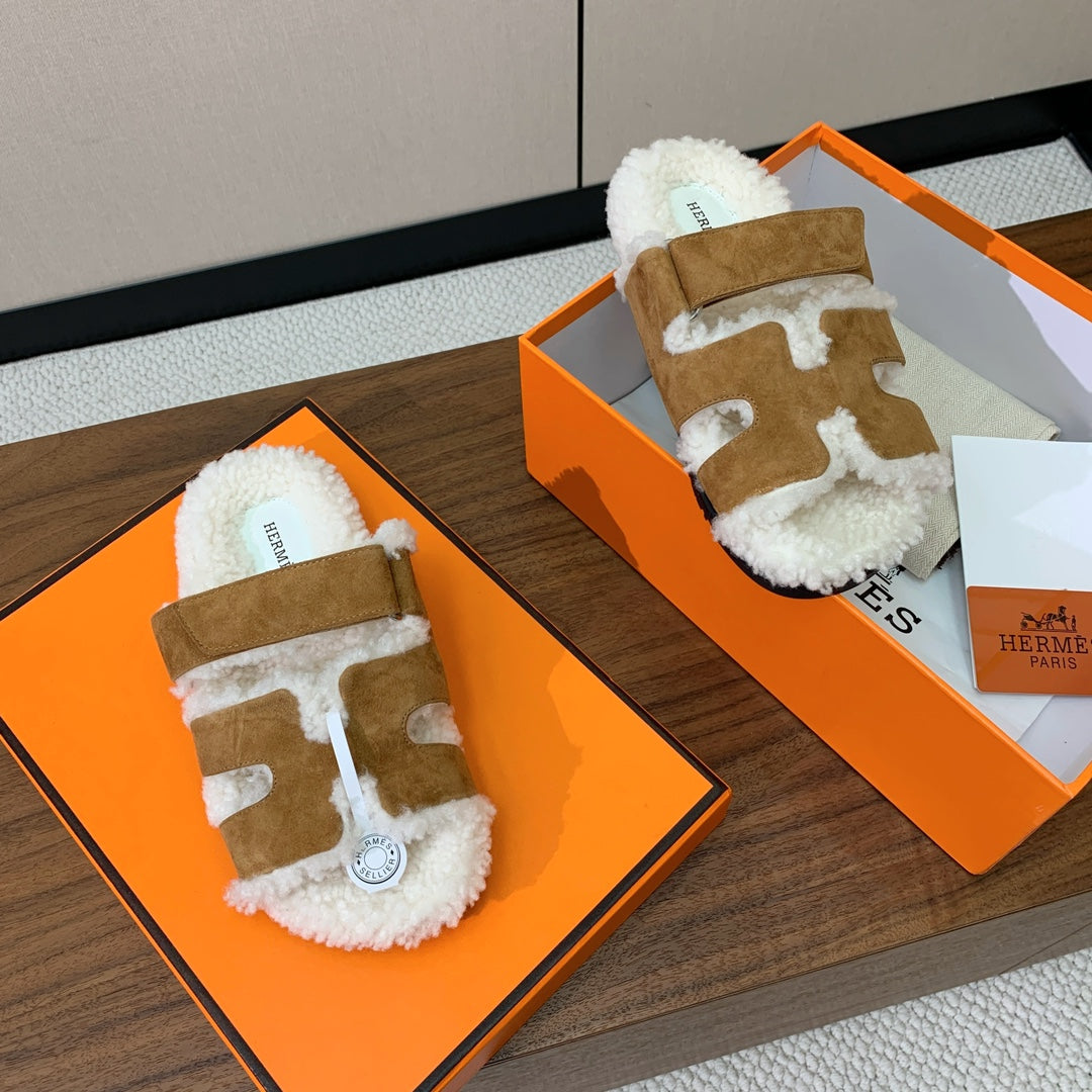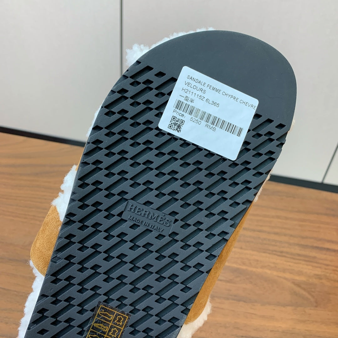 HM Chypre Sandal Light Brown Mix White Wool And Cowhide Lining 984209