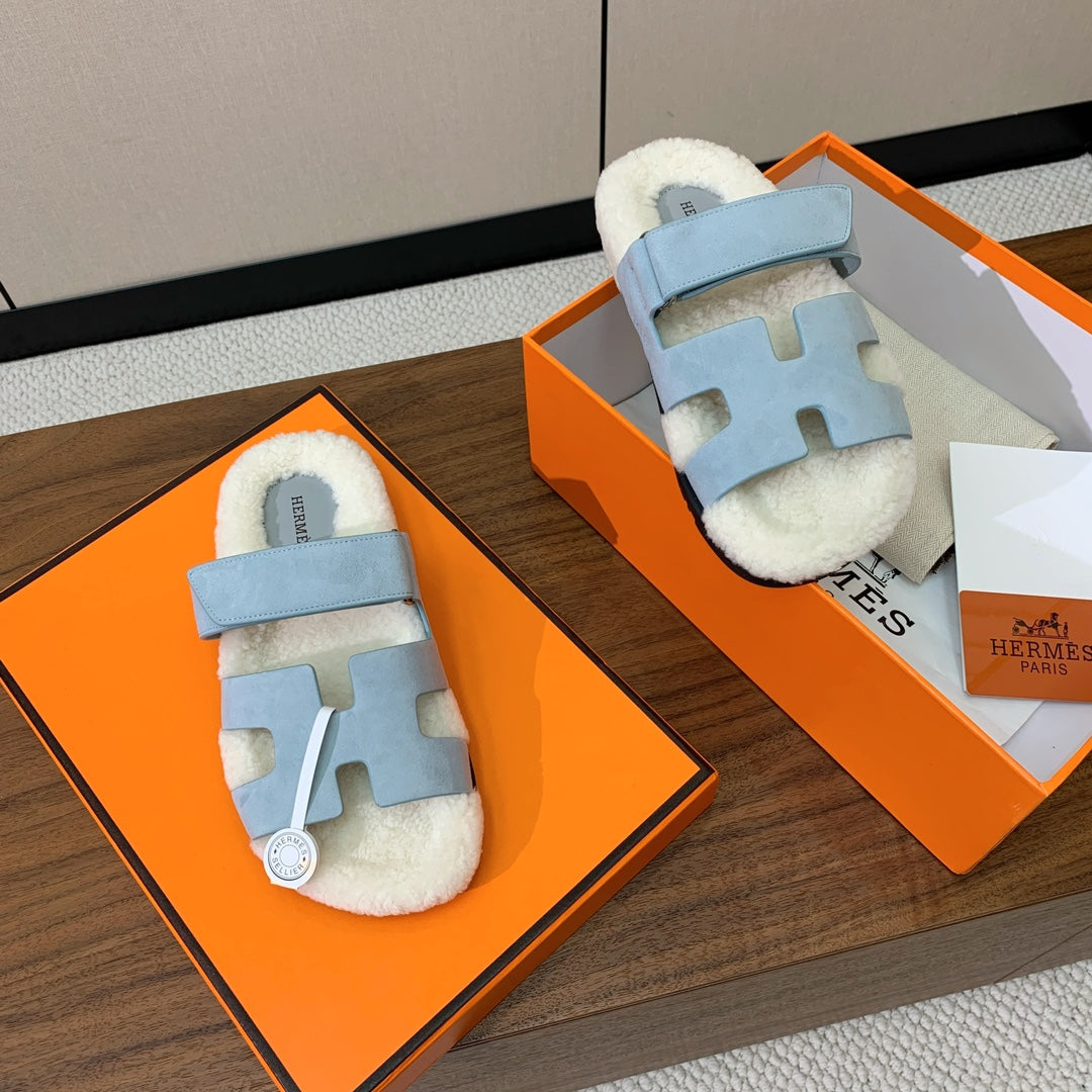 HM Chypre Sandal Cloud Blue Mix White Wool And Cowhide Lining 984208